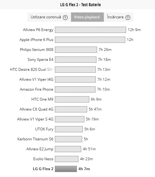 Sensors include an accelerometer, proximity sensor, active noise cancelling and the battery is a Li-Po 3000 mAh unit. The G Flex relied on a 3500 mAh unit, by the way. The battery of the G Flex 2 was a bit of a letdown, since in our HD video playback looped test with WiFi on and brightness at 50% we achieved only 4 hours and 7 minutes, miles away from the 12 hours of the G Flex 1.