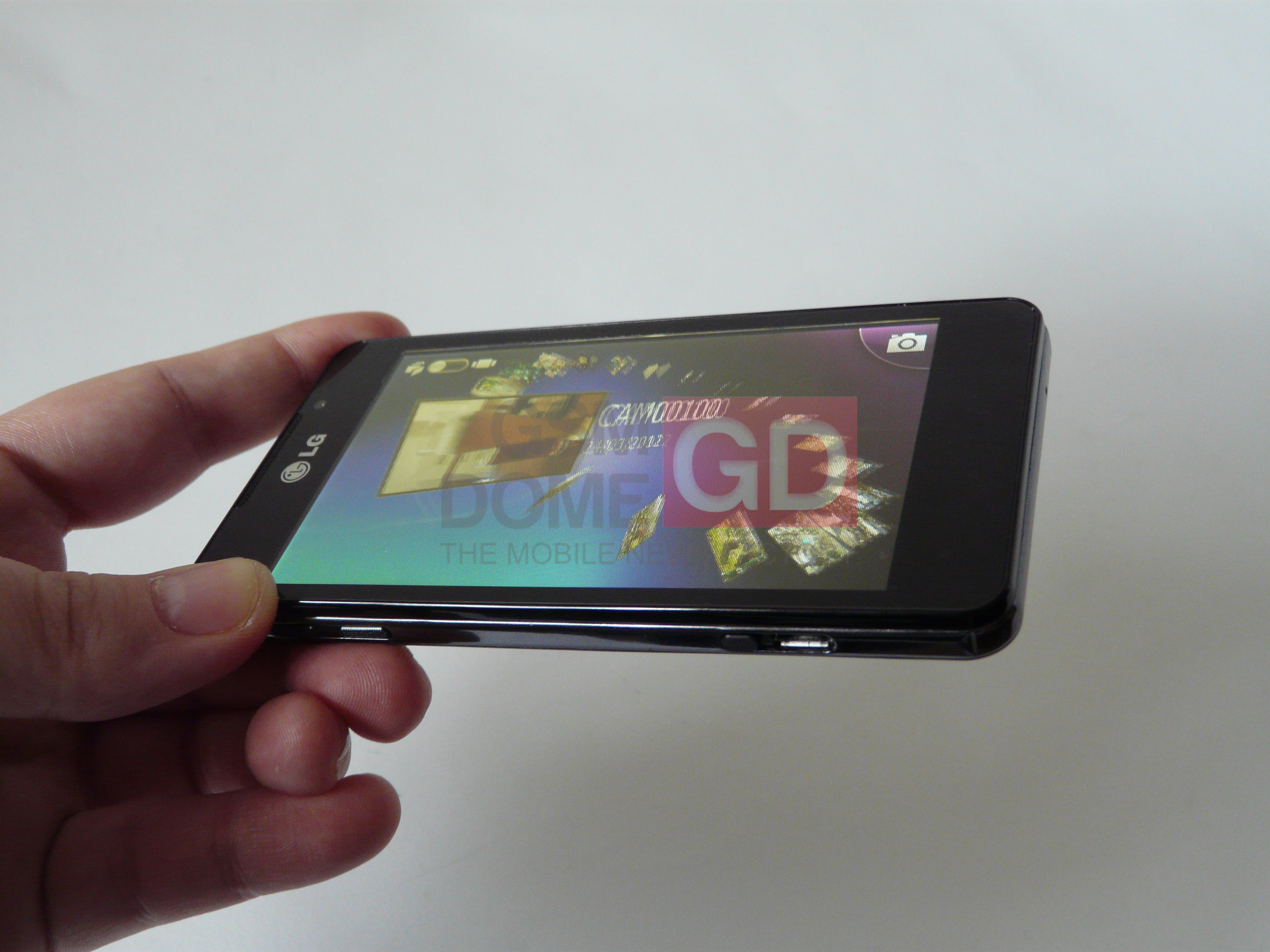 Speaking of which, at the back you’ll find the two 5MP camera sensors for 3D capture, complete with 720p 3D recording and 1080p capture in 2D. There’s also a pretty strong speaker at the back and a quick mention here about Gameloft’s promise to convert all its famous titles to 3D for this game. LG Optimus 3D Max is 10mm thick, it supports HSPA+ 21 Mbps downloads and its screen is reasonably bright, with 600 nits of brightness in 2D mode and 250 nits in 3D. There’s also a 3D button on the side of the handset, switching it to a special 3D interface when pressed. It’s actually the same interface of the LG Optimus 3D, kind of a bummer, if you consider that the phone didn’t quite evolve on the software side for a whole year.
