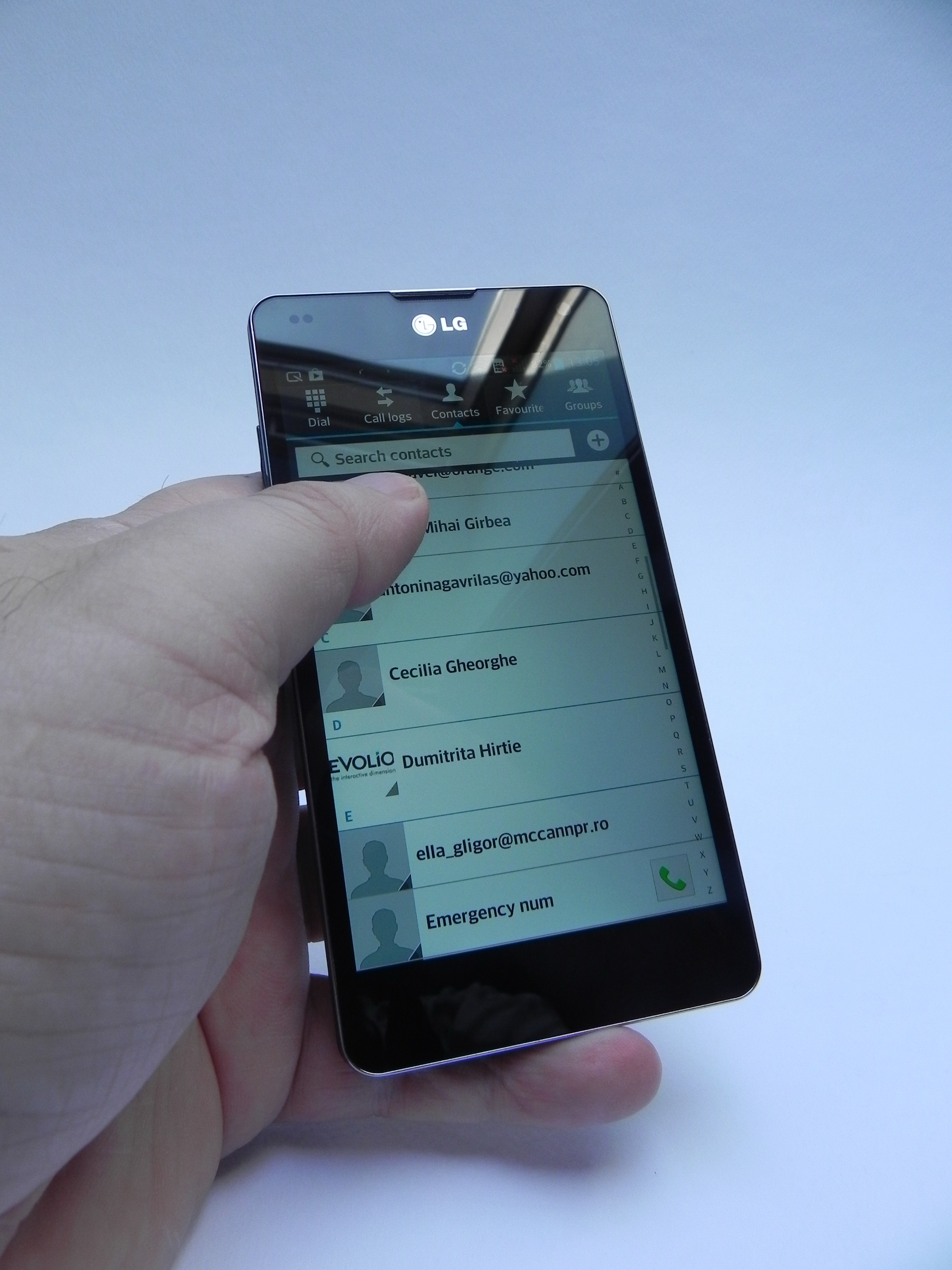The bad thing is that the phone rests on the protruding camera mechanism at the back. I liked the small bezels of the screen, that make us feel that the entire facade is all display. As far as hardware goes, the LG Optimus G comes with a True HD IPS+ LCD with a 4.7 inch diagonal and a 1280 x 768 pixel resolution. There’s also Gorilla Glass 2 protection and other specs include Dolby Mobile technology, no card slot (sadly) and 32 GB of storage.