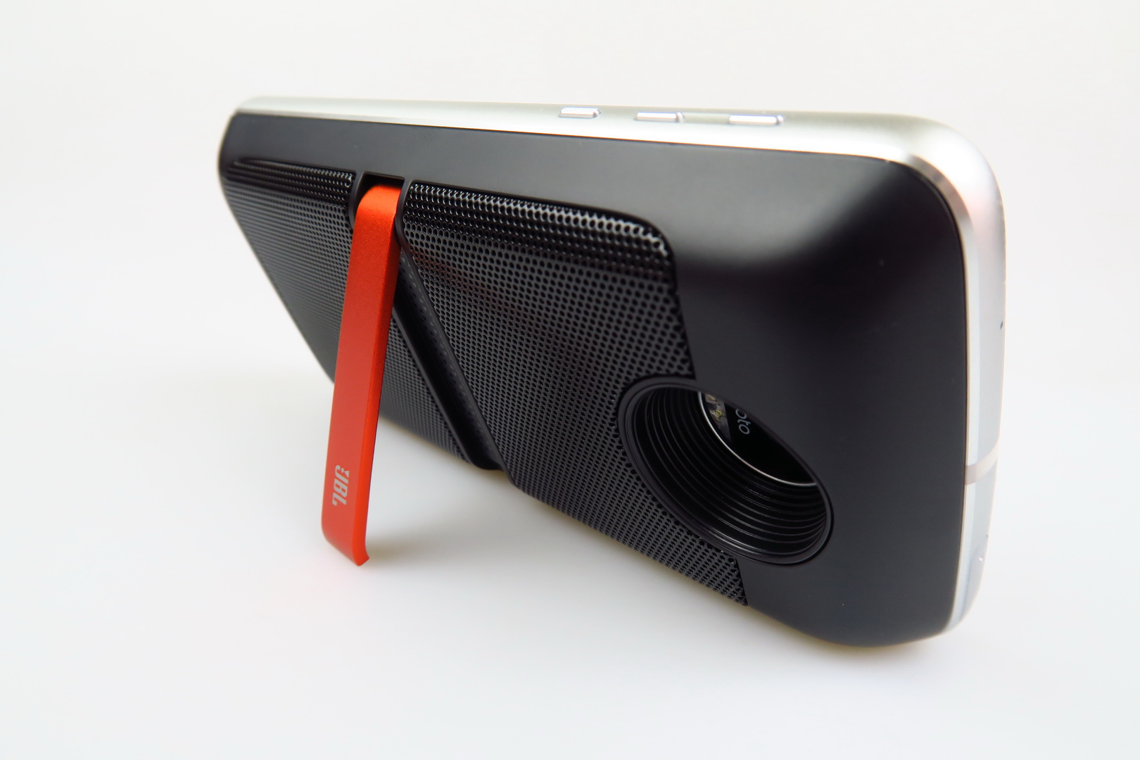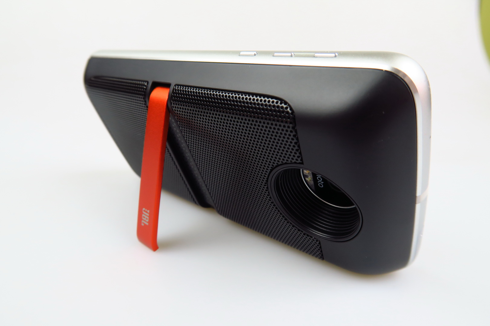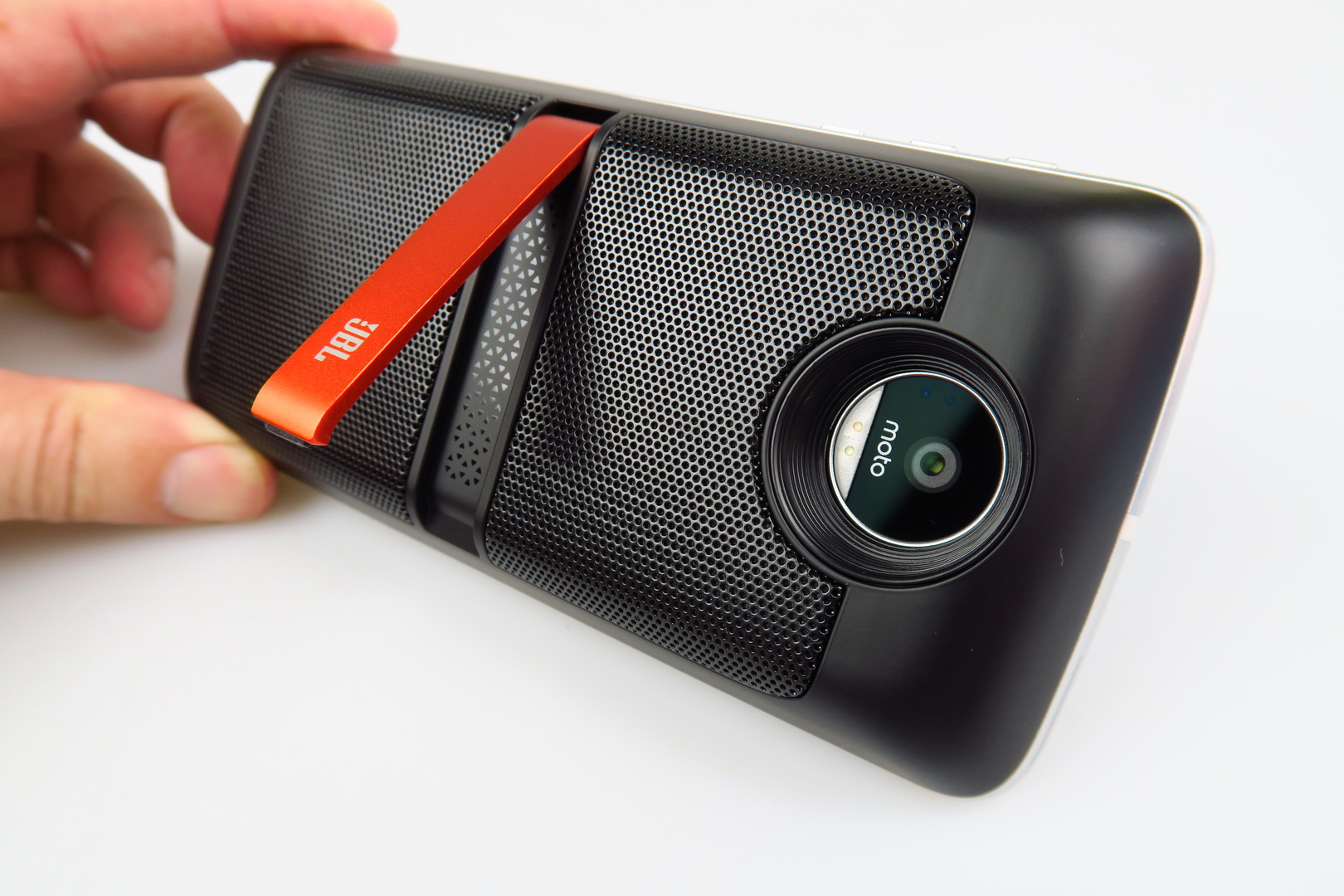There’s no FM radio here and if you want superior acoustics, there’s the JBL SoundBoost module, with its own kickstand and over 100 dBA to reach, courtesy of two 3 W speakers. It also includes a 1000 mAh battery. Let’s see what the camera has to offer. Moto Z Play packs a 16 megapixel back shooter, with laser autofocus, PDAF and F/2.0 aperture.