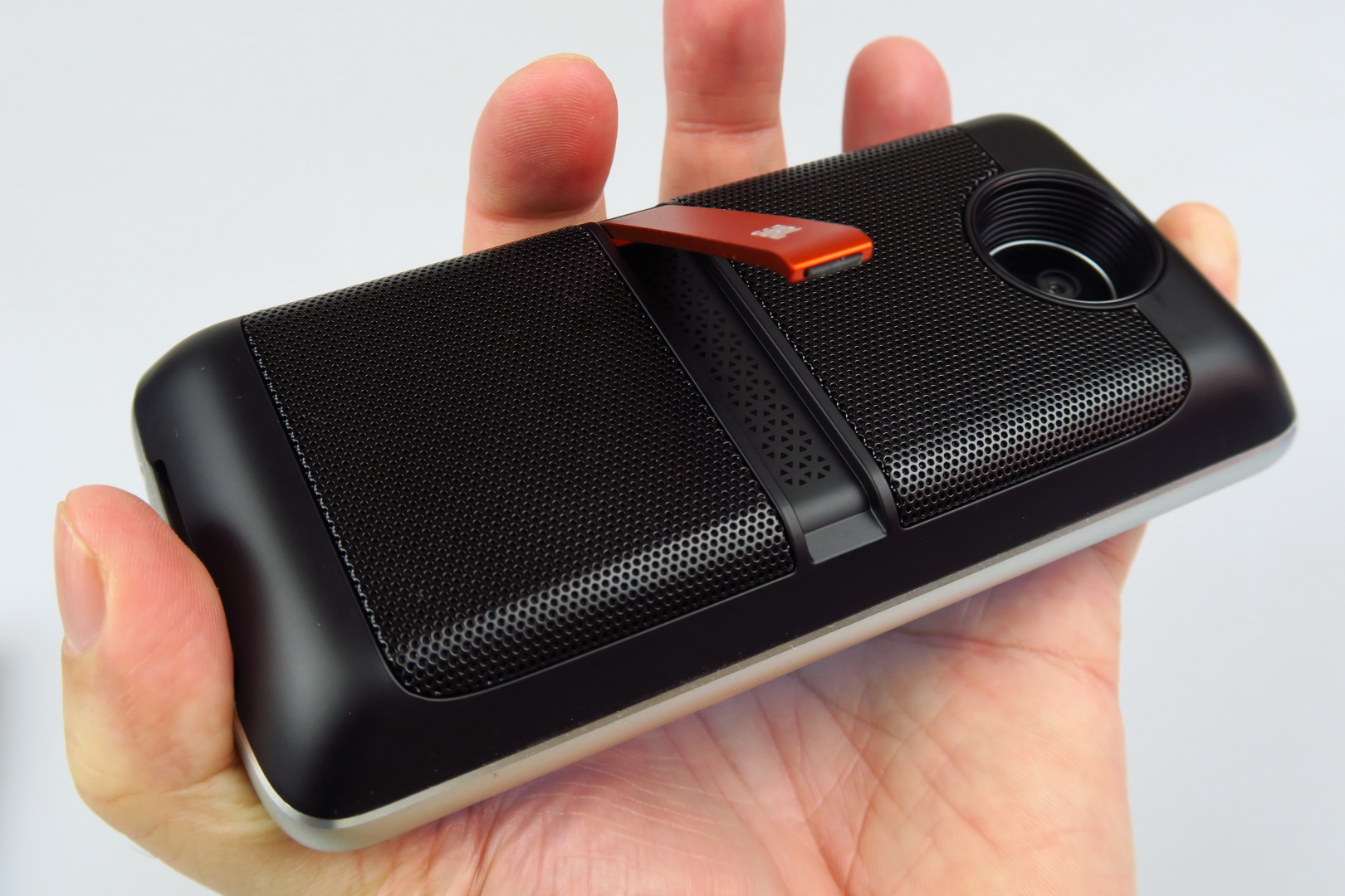 We’ve got Google Photos, Maps Calendar, Drive, Gmail, the usual setup and the Moto app, with its Gesture, Voice and Glance-style features. We also showed you accessories like the Moto Instashare Projector, a $300 machine, that measures 11 mm in thickness and has a lamp that offers 10.000 hours of usage. This is a 480p DLP projector, with 50 lumens to offer and a 70 inch diagonal image to project, while offering a 16:9 aspect ratio.