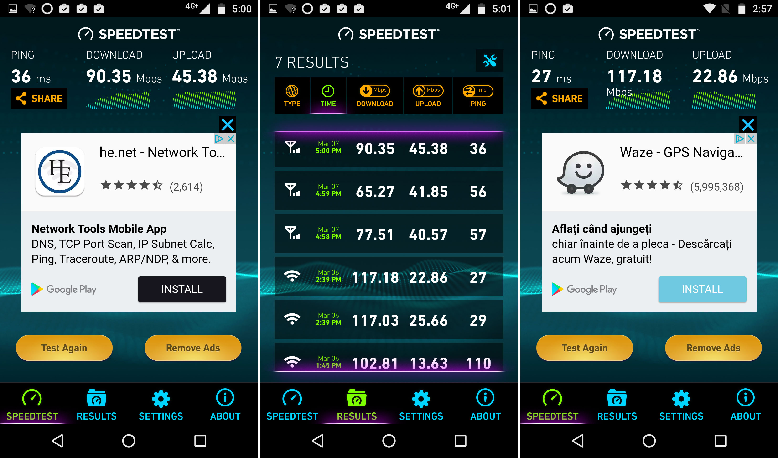 There’s also Bluetooth 4.1, LTE, WiFi a/b/g/n, GPS and no FM radio whatsoever. At least there’s NFC. Calls are loud and clear, pretty crisp and we’ve also got some good noise cancelling and solid mics. The dialer is stock and the SpeedTest we did revealed a download speed of 90 Mbps in 4G and 45 Mbps upload, while the WiFi was at 117 Mbps download and 25 Mbps in upload. It’s pretty good for a midrange phone.