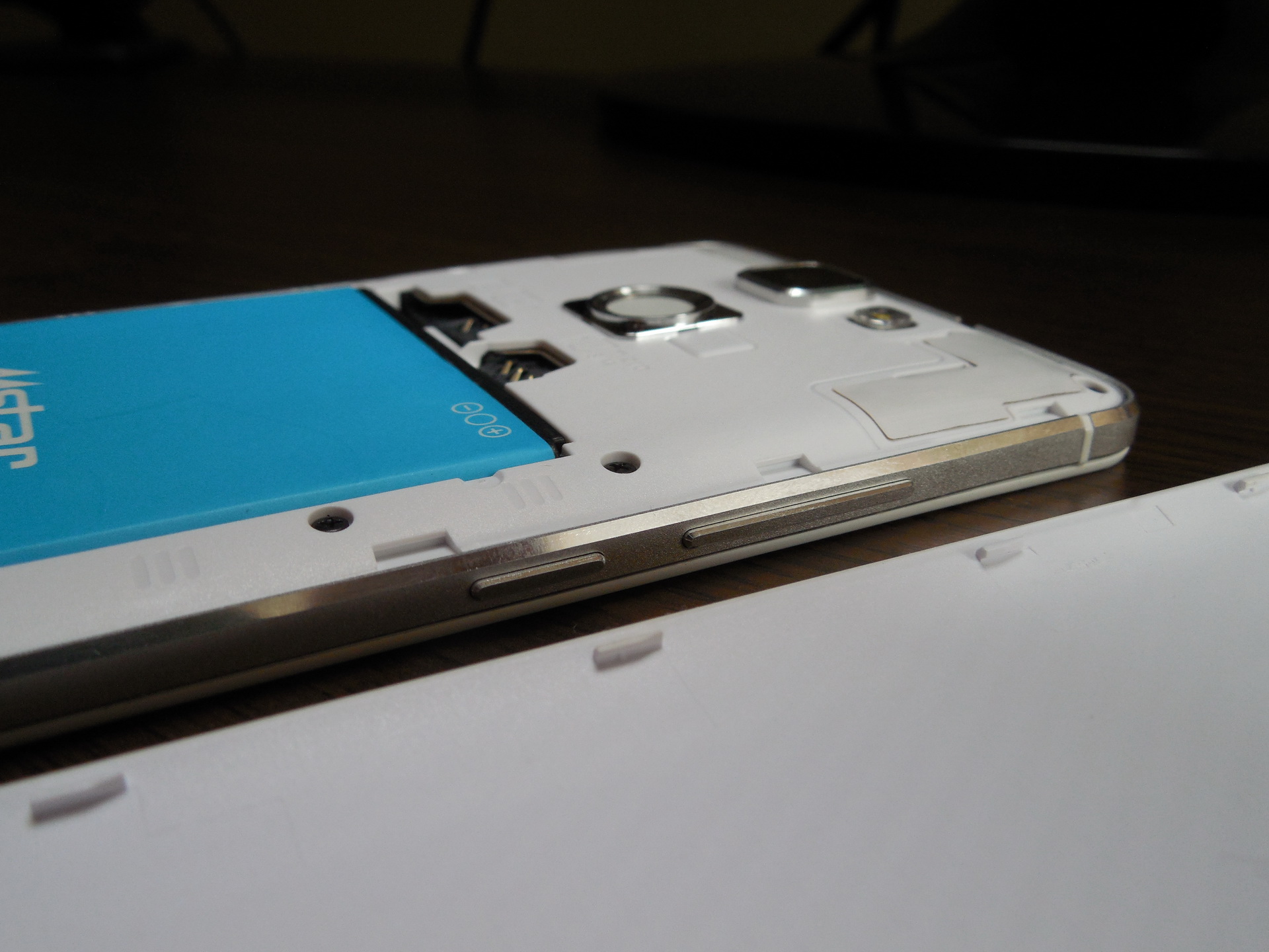 The screen bezel is actually pretty big for 2015 standards. Upfront there’s the selfie camera, sensors, earpiece and capacitive buttons, while at the back there’s the main camera, LED flash and fingerprint scanner, as well as speaker. Once you remove the back cover (which is relatively hard to do), you will have access to the microSIM and standard SIM slot, microSD card slot and removable battery.