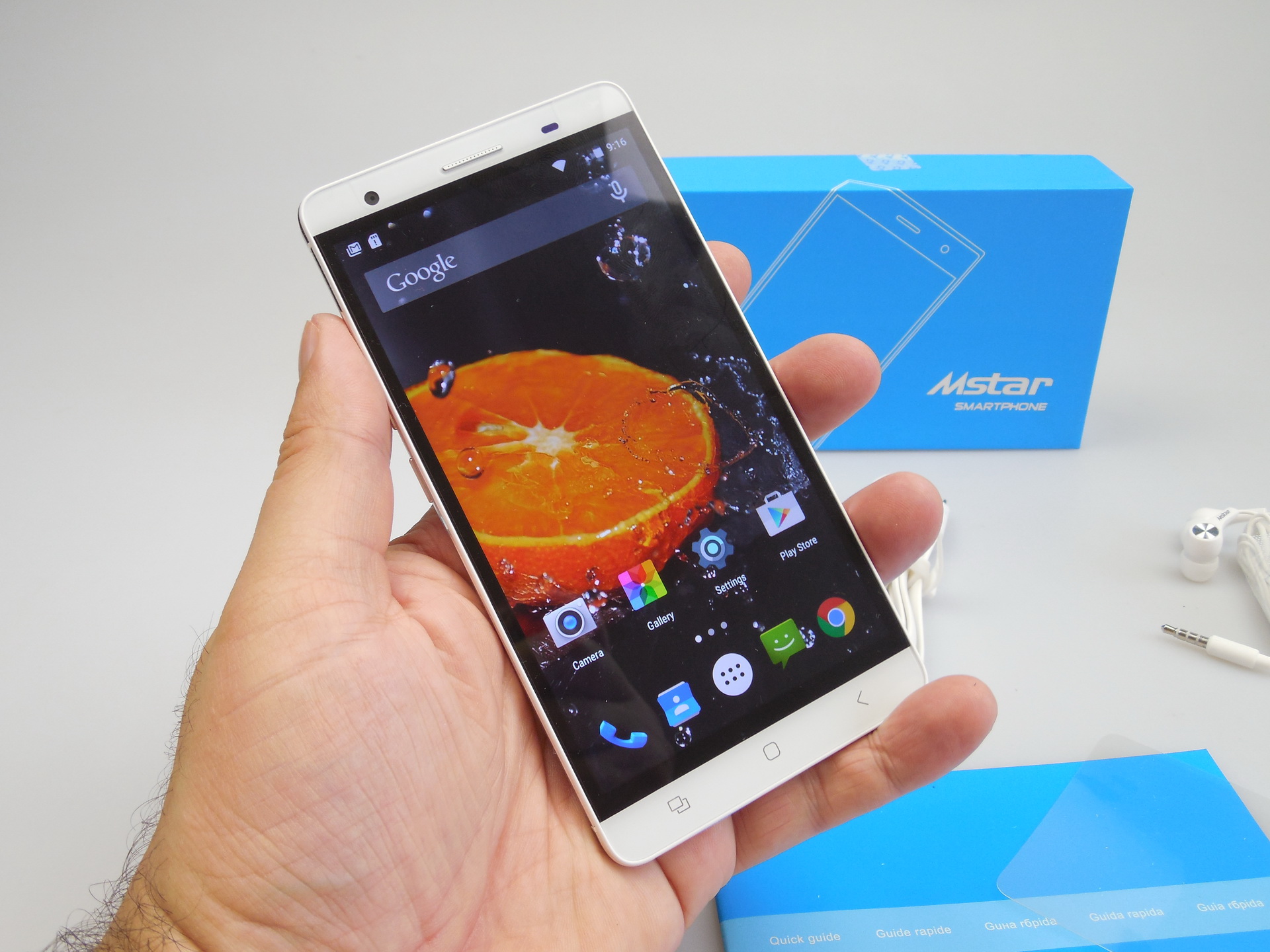 Because the On/Off button is on the left and we’re used to it being on the right side. Mstar S700 has a solid and nice looking design, that comes at an affordable price and it’s also a comfy phone to use. The hardware includes an IPS LCD OGS screen with a 5.5 inch diagonal and a 1280 x 720 pixel resolution. Inside the handset we find the MediaTek MT6752 octa core processor, a 64 bit unit clocked at 1.7 GHz, plus 2 GB of RAM and the Mali T760 GPU.