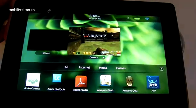 RIM was also present in Barcelona, showcasing the BlackBerry PlayBook tablet and its great multitasking abilities. The device is shown in action in the video below, as it manages to run Quake 3, play back a movie and run Adobe Reader at the same time. The slate makes great use of its 1GHz dual core processor, 1GB of RAM and the QNX OS software environment.