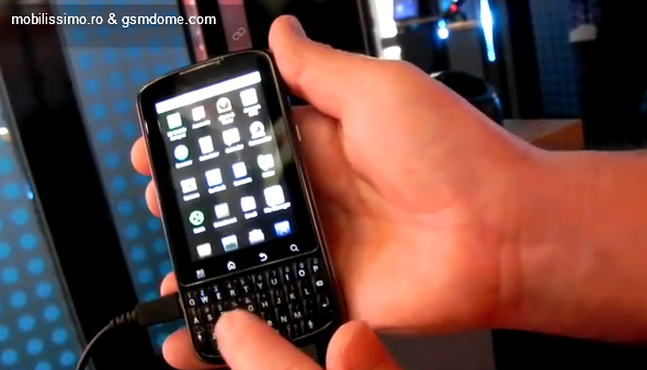 With this model, you can both work and play, as shown in the video we caught in Barcelona. Motorola Pro supports data encryption, both those stored in the internal memory and on the memory card. The handset comes with VPN support and features that include a 3.1 inch touch display and a portrait QWERTY keyboard under the screen.