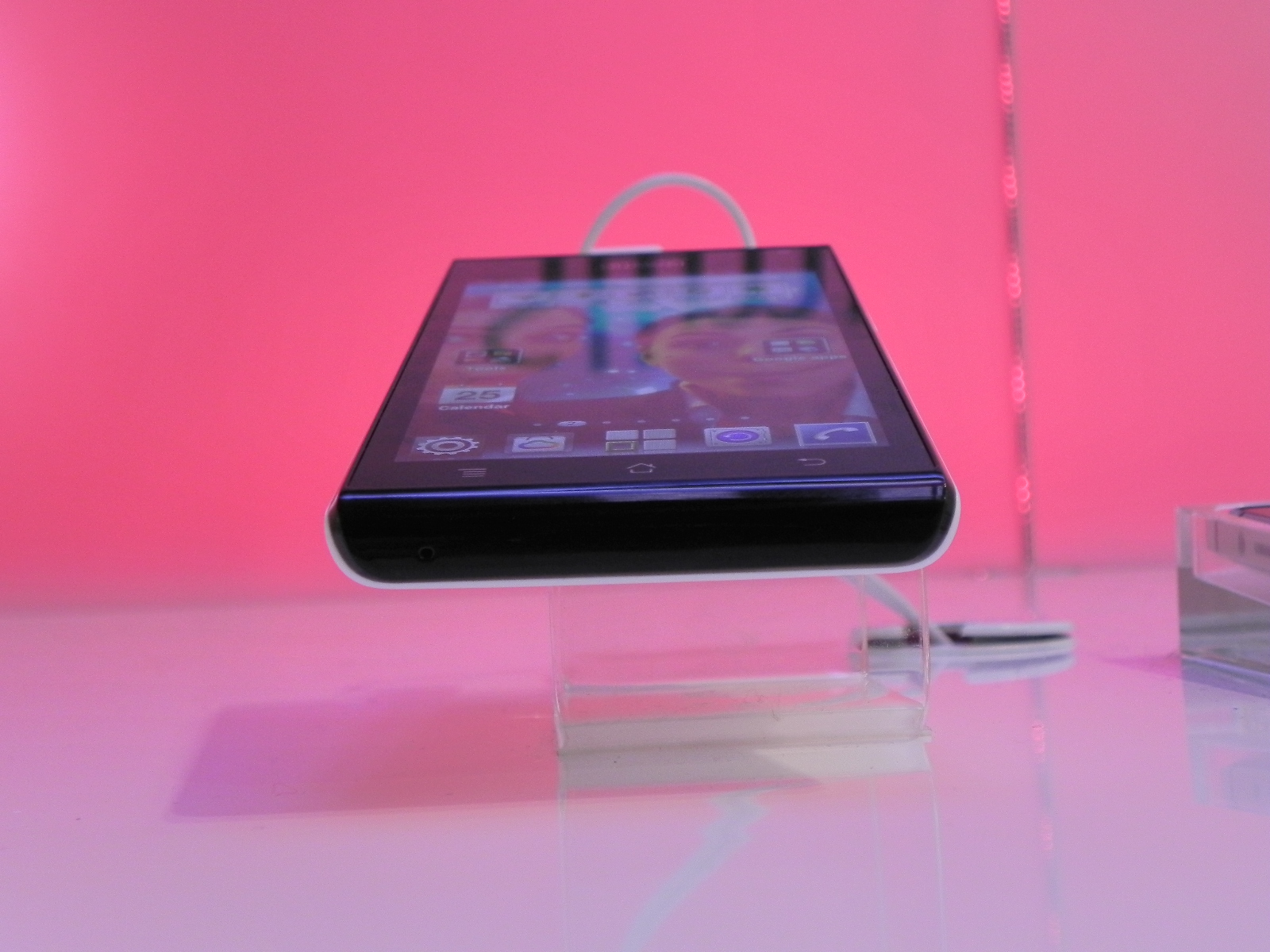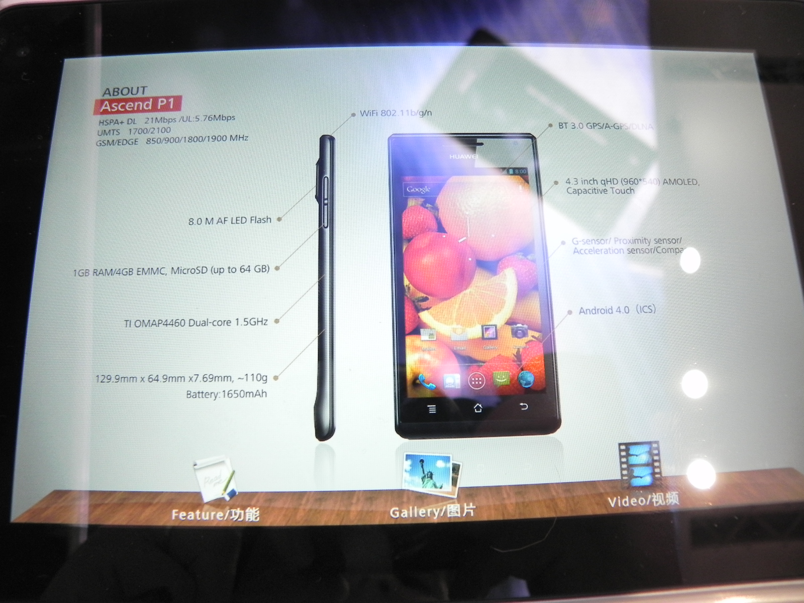 However, today we’re only dealing with the P1, that’s also reasonably slim at 7.7 mm in waistline. The phone looks nice and it seems to feature a special photo widget on the screen. The video below shows you the ports on this device and also we find out that it has a non removable battery, an interesting unlock screen and some nifty transitions and animations. When you switch from one app screen to another it looks as if a cube was rotating.