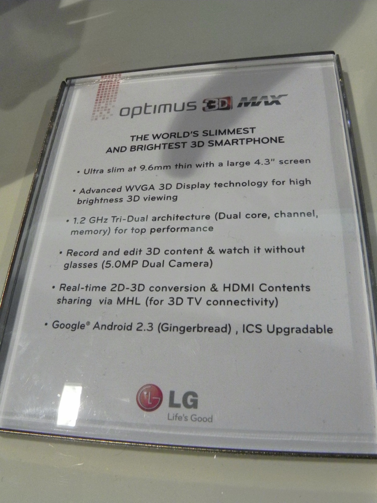 Since we didn’t manage to get into the LG event at MWC 2012 (actually almost everyone didn’t), we’re happy with some hands on time with the latest LG handsets. One of them is the LG Optimus 3D Max, the follow-up to last year’s LG Optimus 3D. This one is also a 3D phone with a 3D display and dual 3D camera, but more about that will be available after the break.