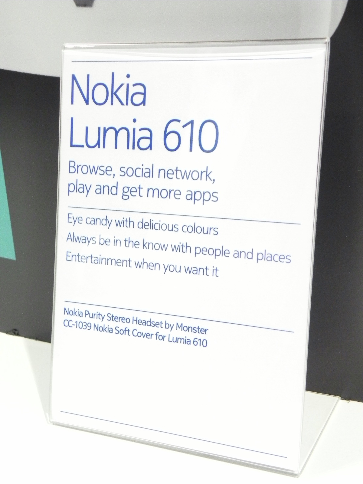 The handset will be available in a variety of colours, like the Lumia 710, so it’s once again a handset for youngsters, trendsetters and people who don’t want to spend a lot. The build here is obviously cheap plastic, but it’s assembled in such a way that it looks nice, especially with those chrome edges and soft touch back. It appears that this phone, just like the Lumia 710 will have interchangeable back panels. Other things to know are the fact that Nokia Drive has been updated and here’s a new Nokia Reading app for news reading.