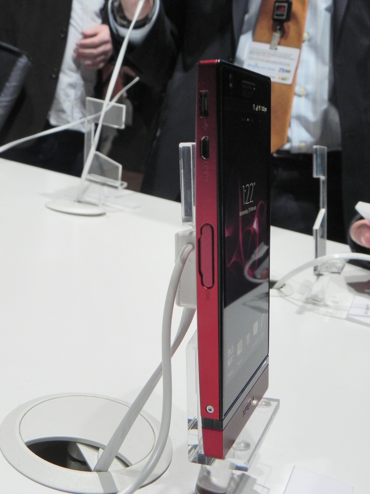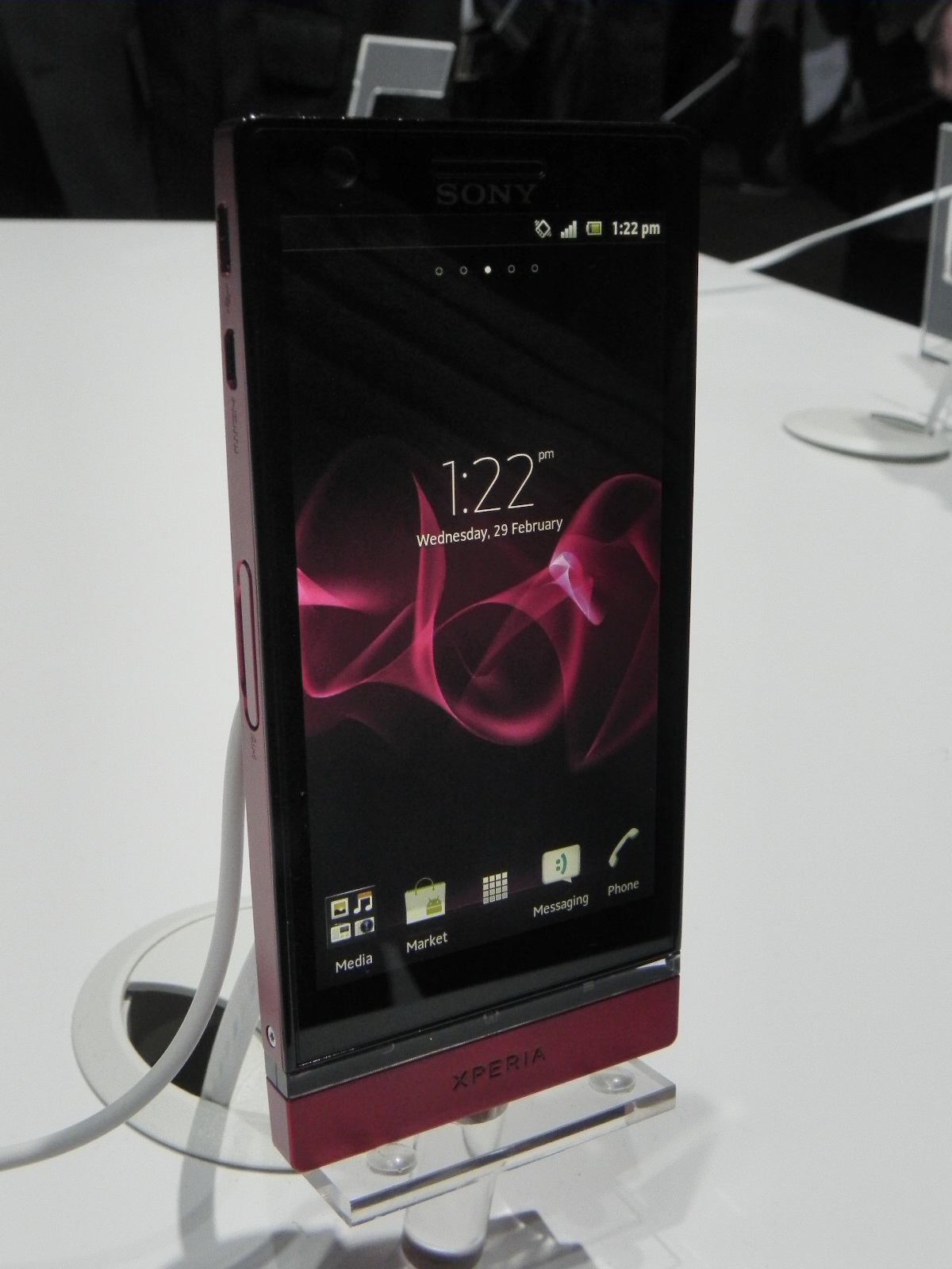 We’ve met the Sony Xperia S and Ion at CES 2012 and now we met two new Xperias at MWC 2012: The P and U models. The first is seen in the following pictures and video, taken by our editor in Barcelona. This is a midrange phone, that just like the Xperia U is a smaller version of the Xperia S, when it comes to design. The transparent bar at the bottom gives it away.