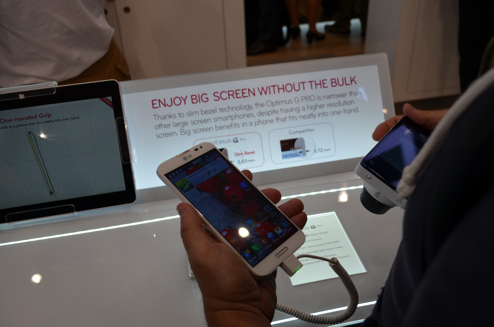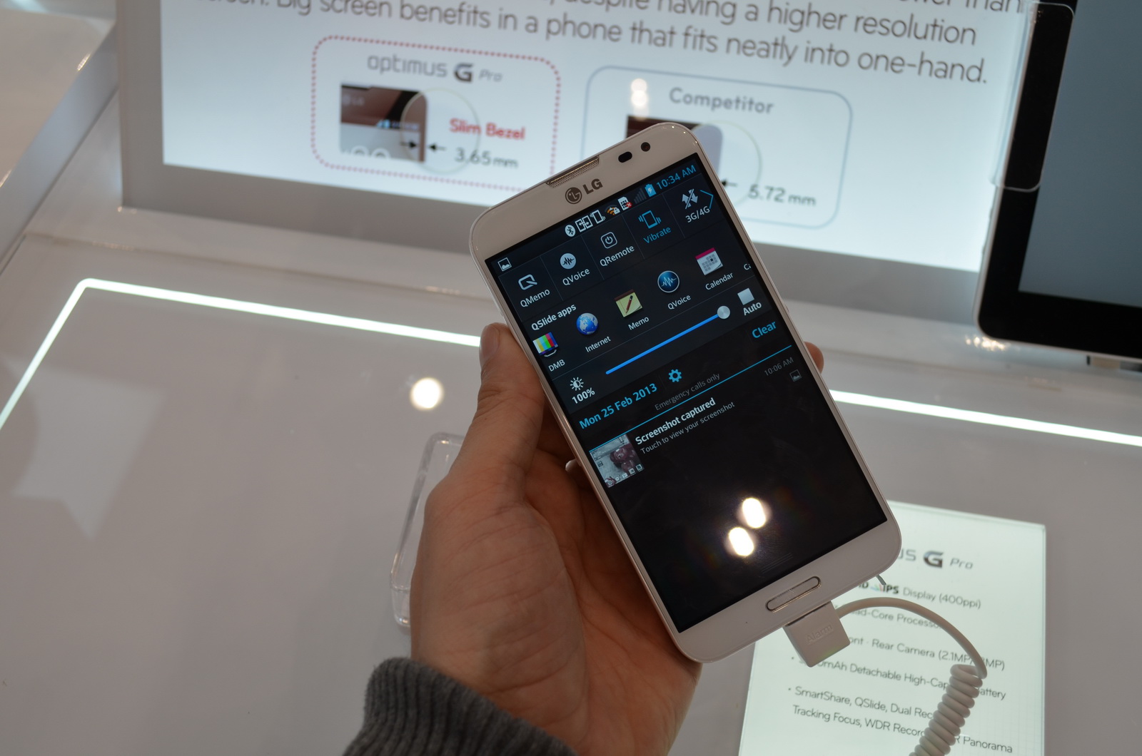 LG Optimus G Pro is a 5.5 inch 1080p display phablet, one that makes the Nexus 4 pale in comparison and a very promising piece of machinery. We had the chance to have some quality time with the device during MWC 2013, taking place in Barcelona this week. At the LG booth we got a demo of the software features of the device and we were very impressed.