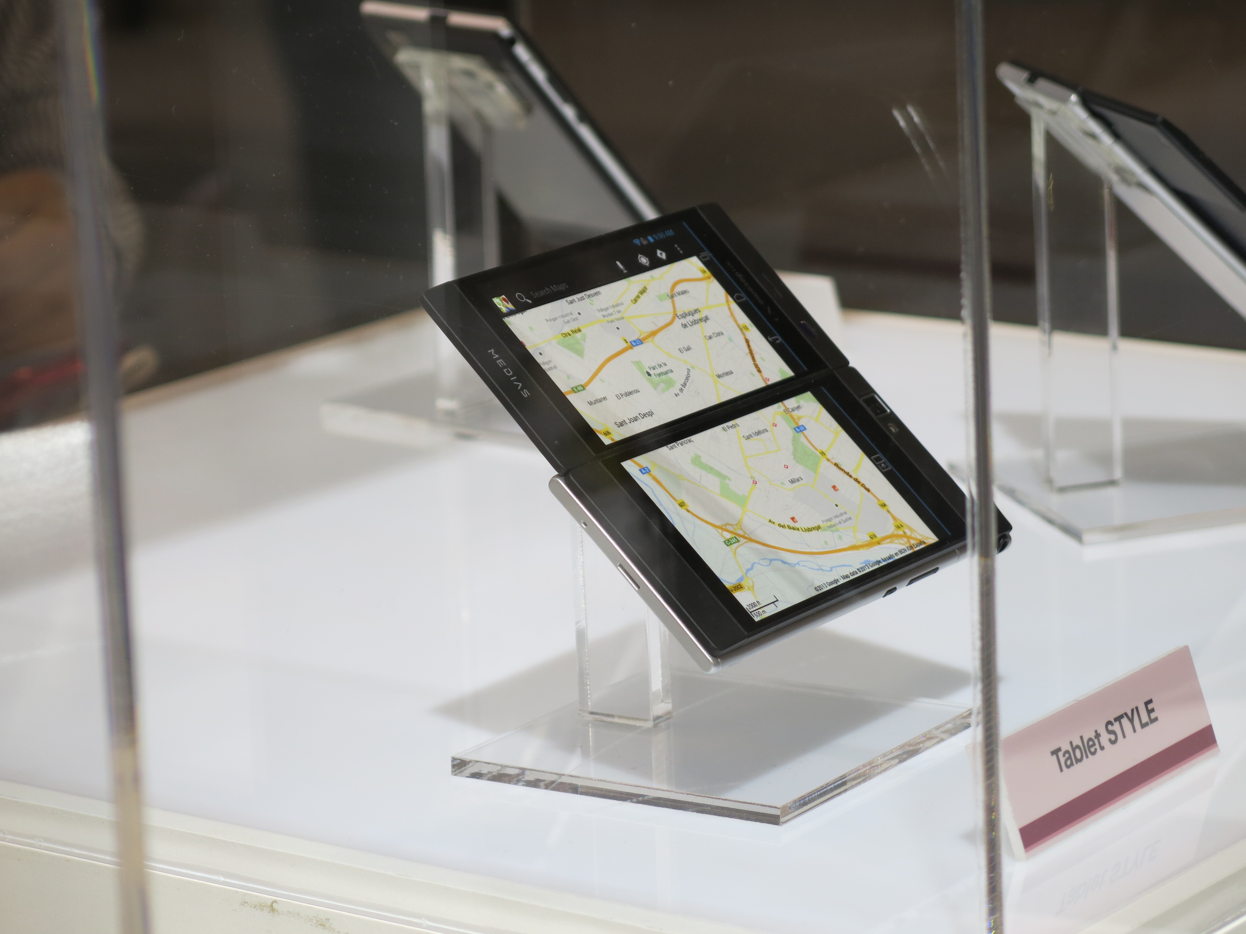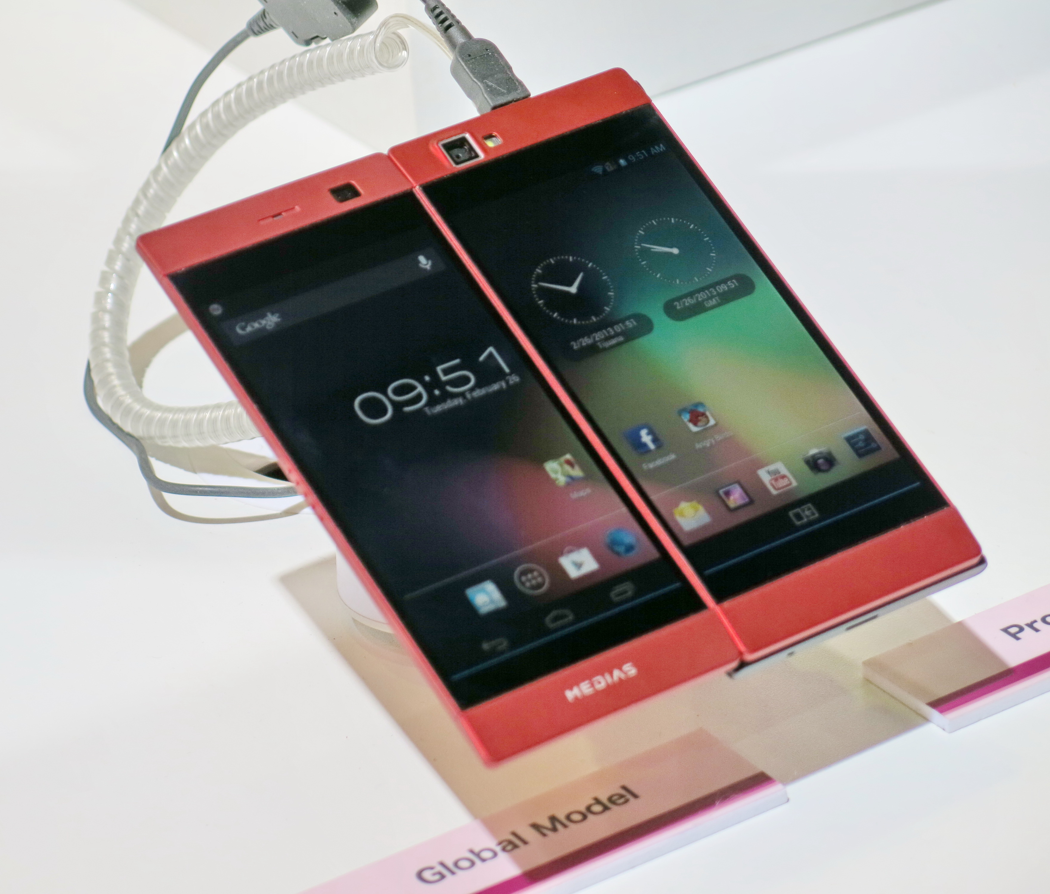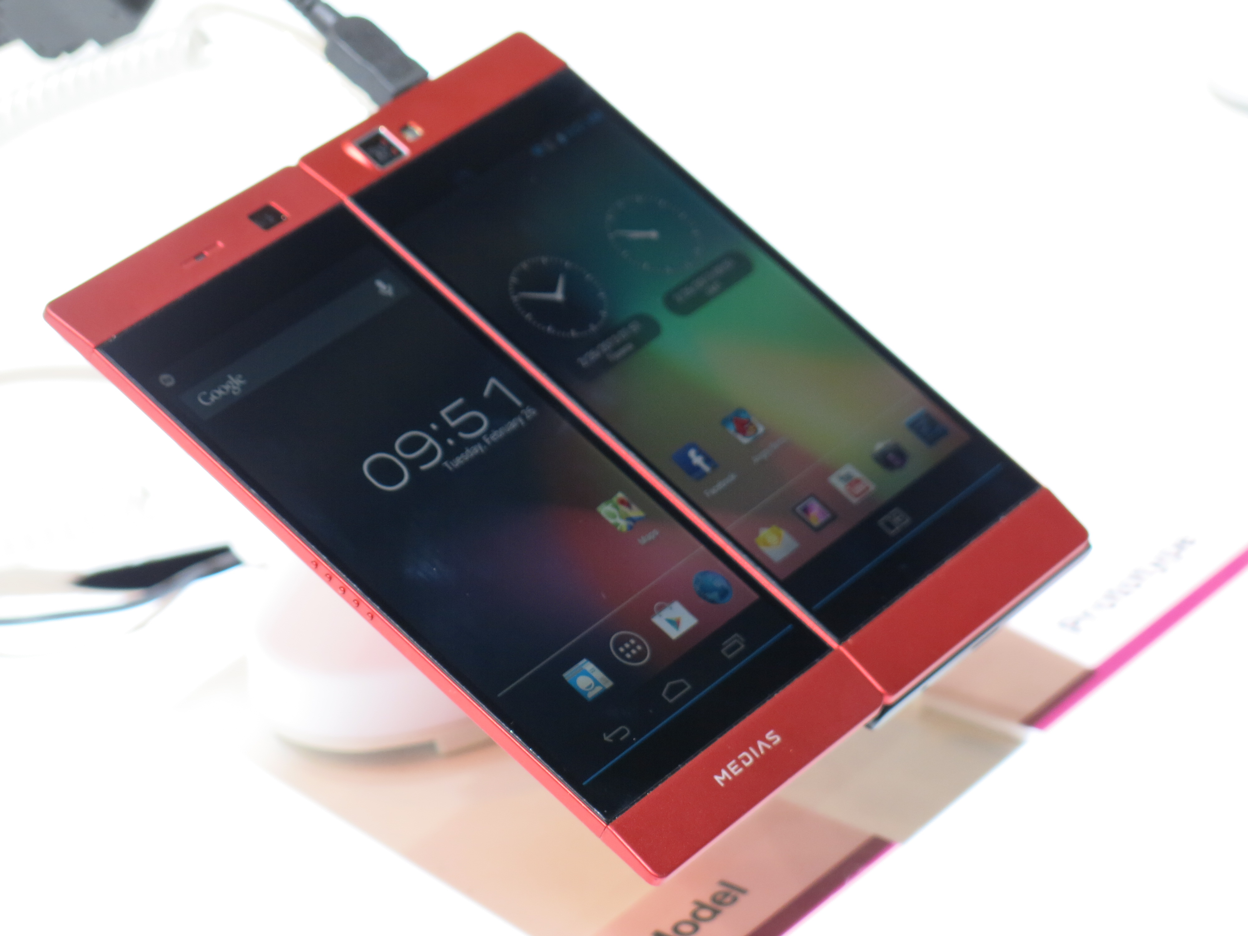 This is a global prototype that’s demoed here, meaning it may actually hit some stores at some point. We’ve yet to see a trully commercially viable dual display phone, maybe aside from the Kyocera model from last year, that didn’t get to be a hit in the end. Anyway, the Medias W is launching in Japan in April and it brings us two 4.3 inch qHD screens that can be used on their own or together, forming a 5.6 inch tablet. The screens are LCD ones and the device also features a dual core Snapdragon S4 1.5 GHz CPU, plus 1 GB of RAM.