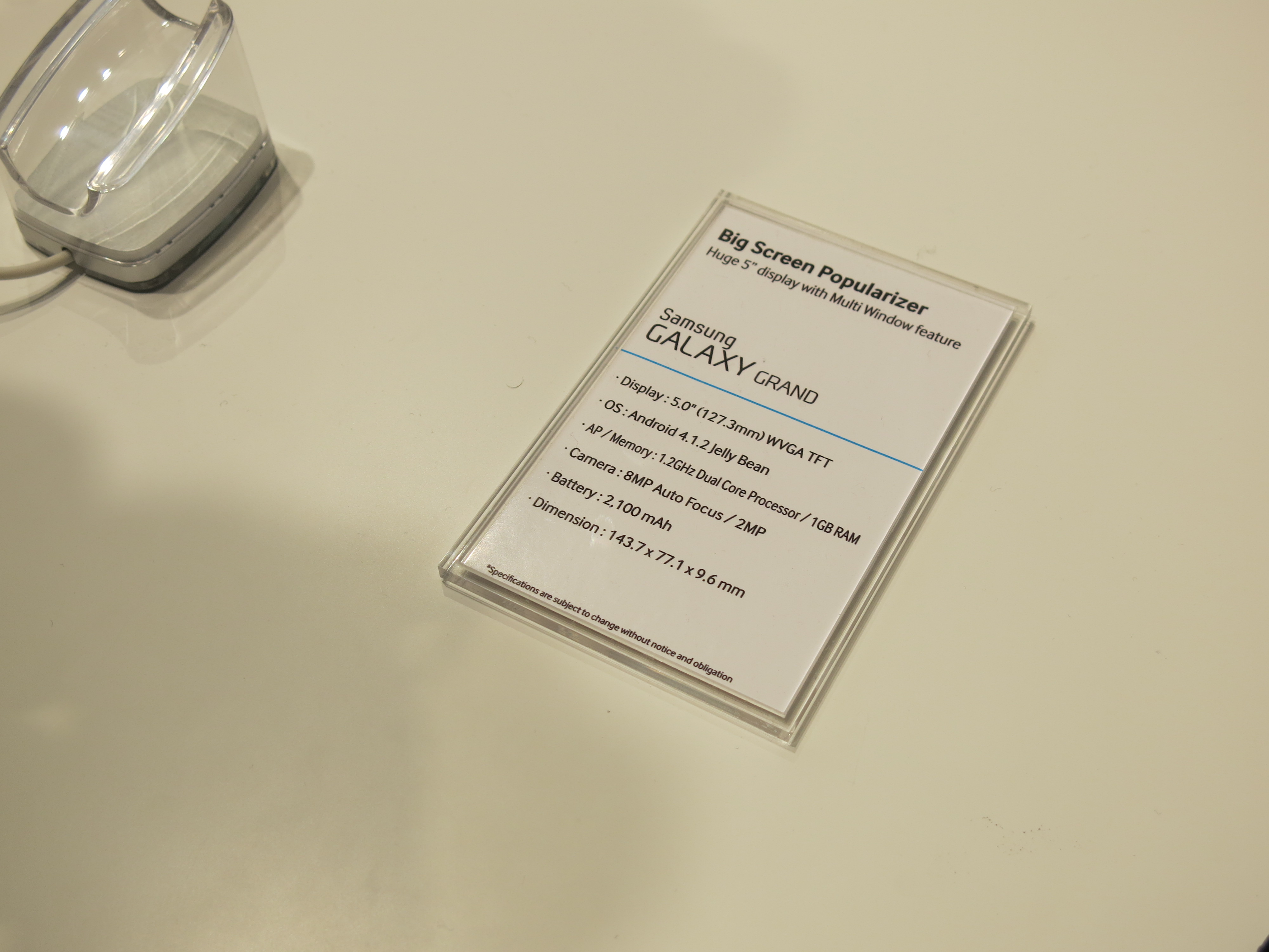 Other specs include a microSD card slot, 8 GB of storage, 1 GB of RAM and HSDPA 21 Mbps connectivity. There’s also an 8 megapixel camera at the back, with autofocus, dual LED flash, geotagging and image stabilization. The device runs Android 4.1.2 Jelly Bean on top of a dual core 1.2 GHz, with TouchWiz customization.