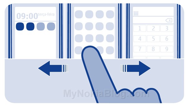 It’s a very nice approach, that finally changes those rigid pieces of paper filled with numbers and specifications. However, the same playful manual also reveals something very interesting: this handset is actually running an OS that’s very modern, although we thought it was merely S40. It appears you can swipe around the UI, you’ll have a central icon grid, just like on MeeGo and then a homescreen on the left and dialer on the right. You can also configure those windows, making me think that we finally got the ideal OS on a lower end device.