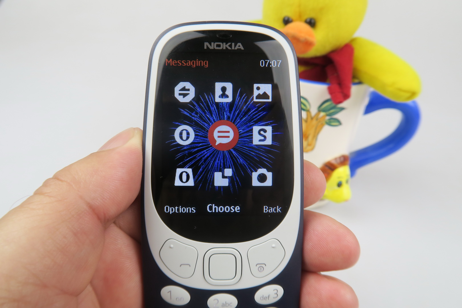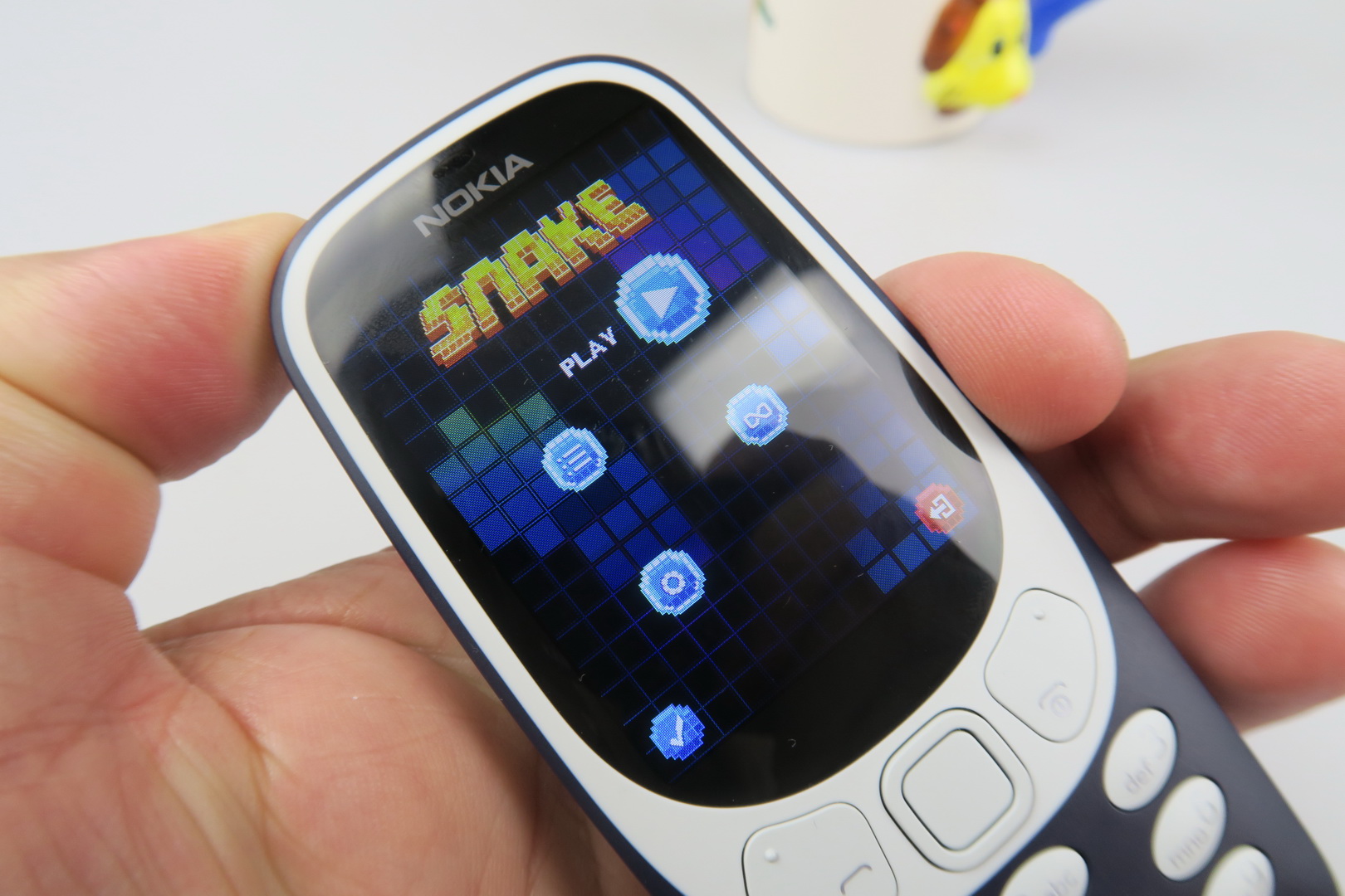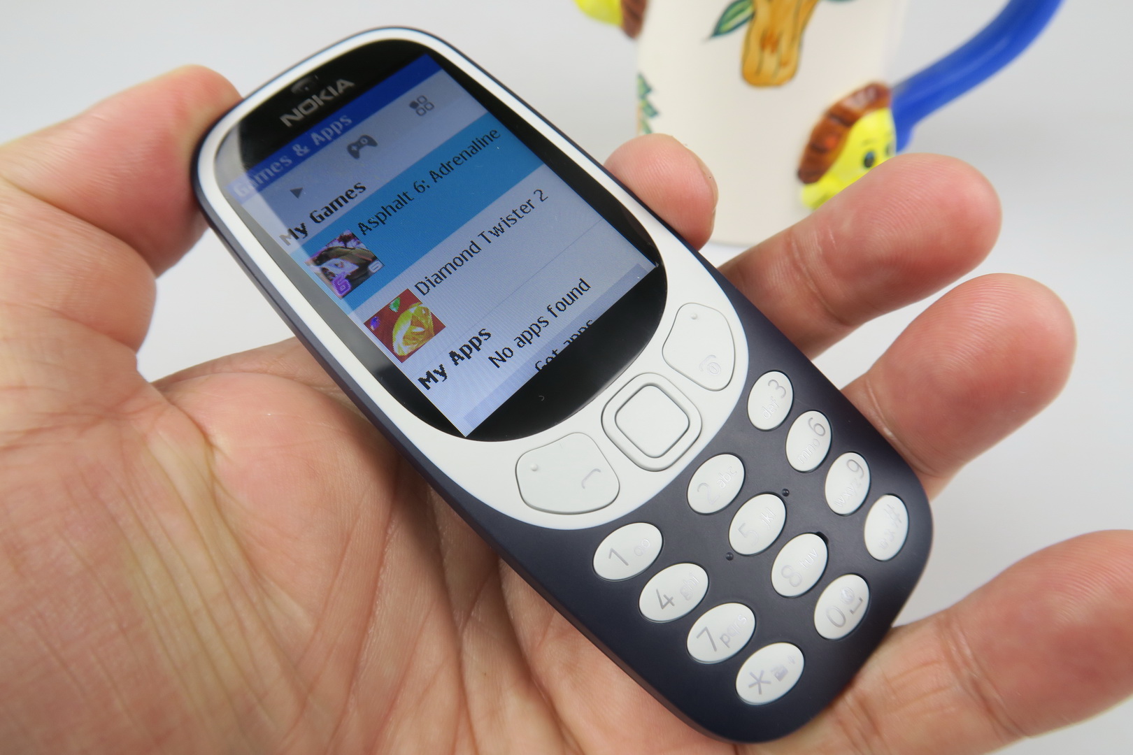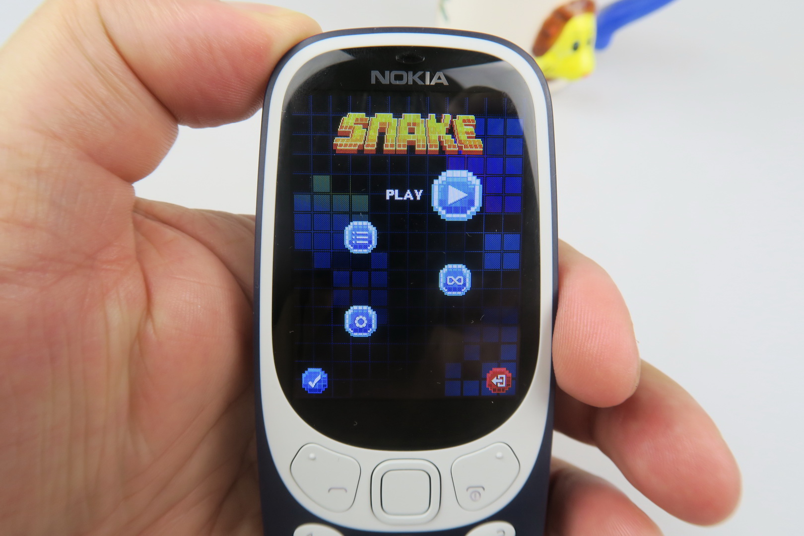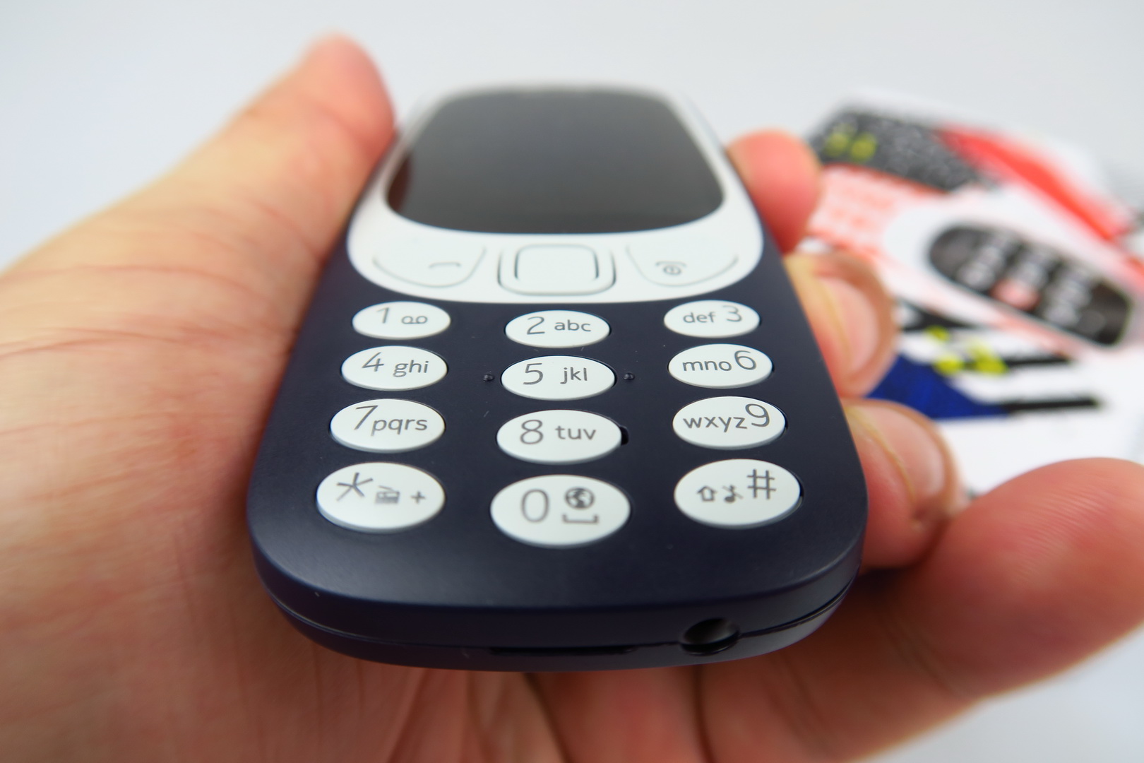 It’s still thick by today’s standards, but has an OK footprint for a feature phone. It’s more rounded than the 3310, especially on the sides and uses flimsier and cheaper plastic. It doesn’t seem like it could survive the drops and beatings of the predecessor to be honest. The keys are also too flat and less ergonomic than those of the 2000 model.