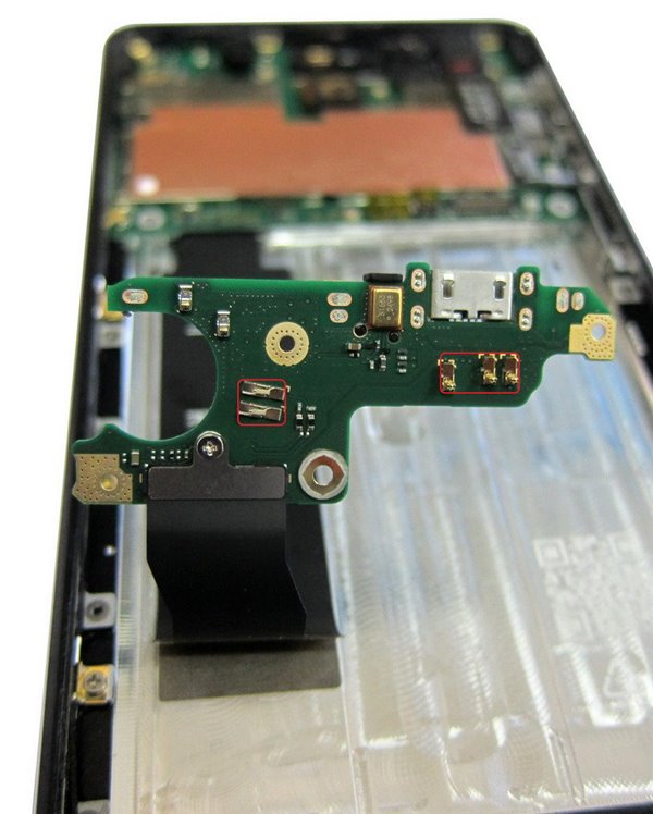 There’s plenty of room for the battery, that gets its own frame and there’s a large quantity of screws used to keep everything together. This is good news, because we don’t have to get annoyed by the glue, that so many device makers rely on to keep stuff from falling apart. The motherboard is kept in place by many screws and this also helps with the solidity of the body, so don’t expect any bendgate here.