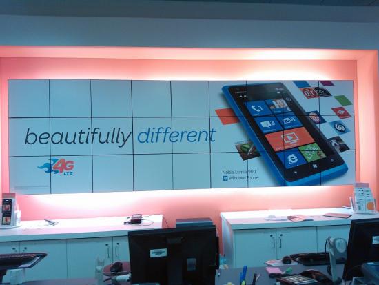 Now that it doesn’t have the iPhone as an exclusive product for years now, AT&T might as well feast on the freshly arrived Lumia devices from Nokia. Thus, it’s no wonder that they get such solid in store promotion, as shown below. The tiles have recently been all over USA, including in the Times Square special event where Nicky Minaj sang some songs while the light show was all about Lumia.