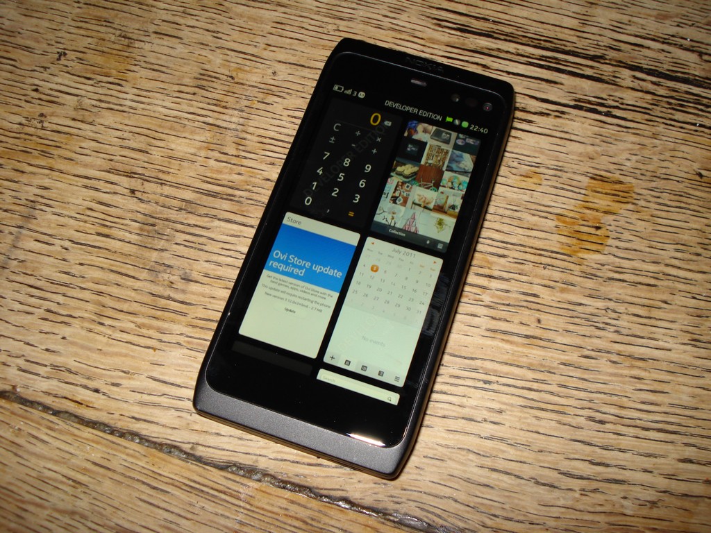The LCD screen has great viewing angles and the icons from MeeGo look great on the 4 inch capacitive touchscreen. Well, those of you sad about the fact that this is a developer only phone, should keep in mind that Nokia sometimes recycles designs, so we might see a similar phone with Windows Phone 7 in the future.