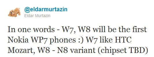 Eldar Murtazin is back in action, this time with fresh info on Nokia’s upcoming Windows Phone 7 devices. Keep in mind that considering the Mobile Review editor in chief’s reputation with rumors, you shouldn’t take the info for granted. However, the idea of having 12 WP7 Nokia units in 2012, as he claims sounds very good!