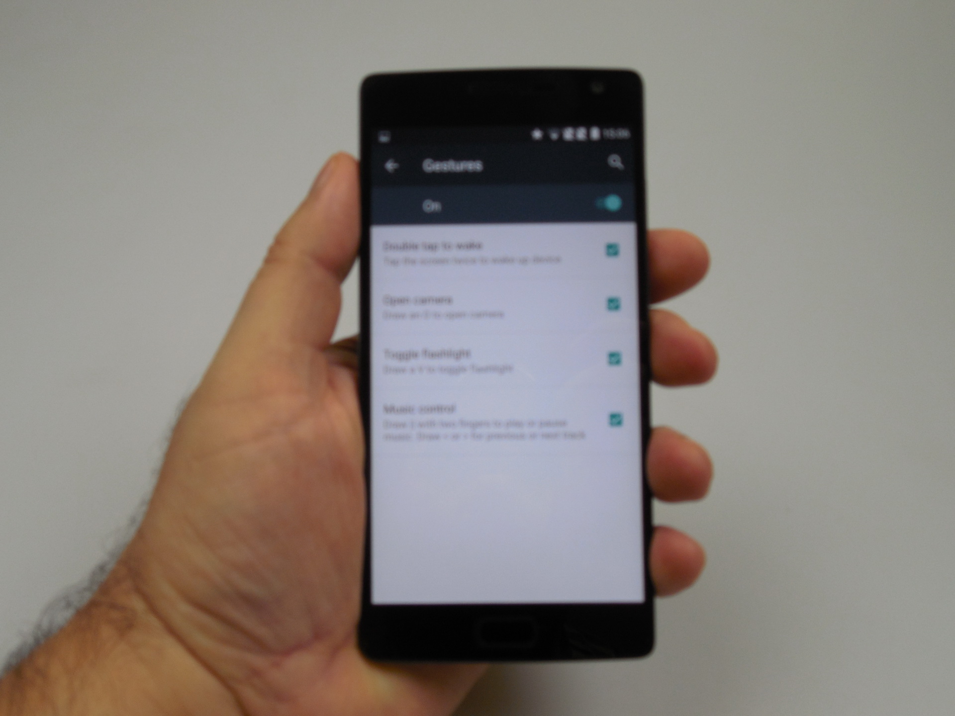 The dropdown area is pretty much stock, with notification, brightness slider and Quick Settings. The Settings portion has features for virtual Android buttons, in case you want them to replace the capacitive ones and you can also associate apps and functions to various presses of the capacitive buttons. A long press or double press can open the camera, Music or other apps for example and that applies to all 3 buttons. Gestures are also here (double tap to wake and draw an “O” for the camera” and more).