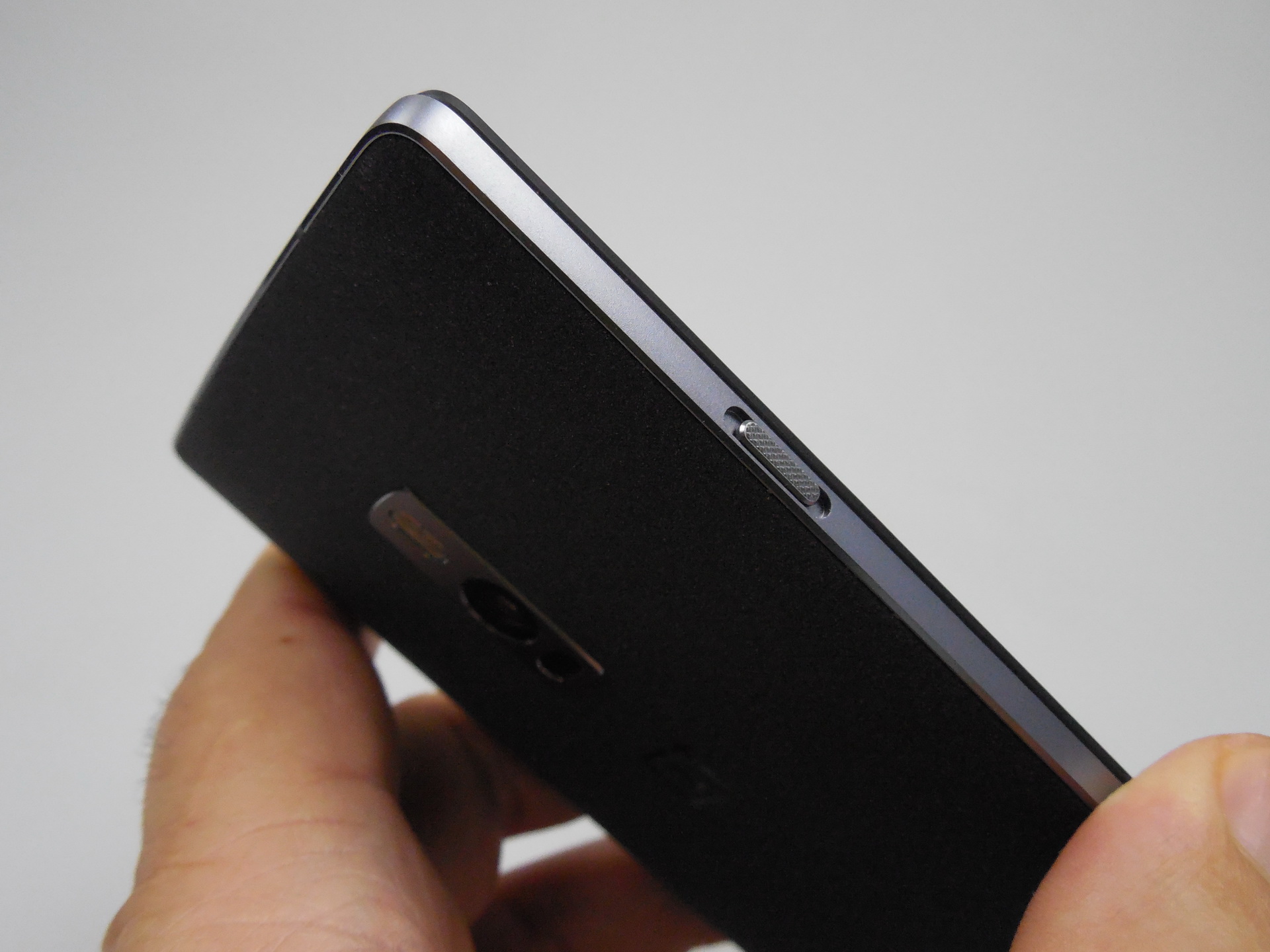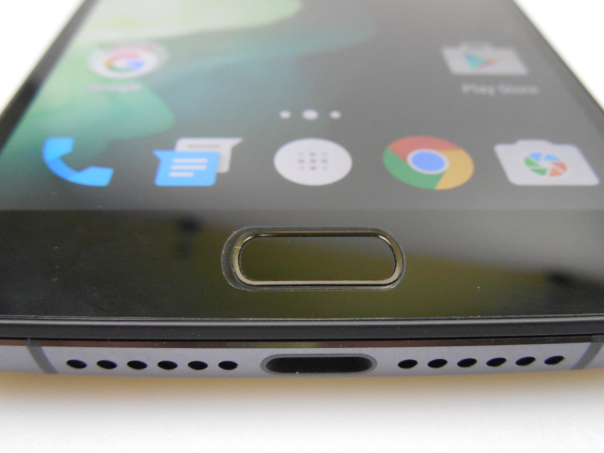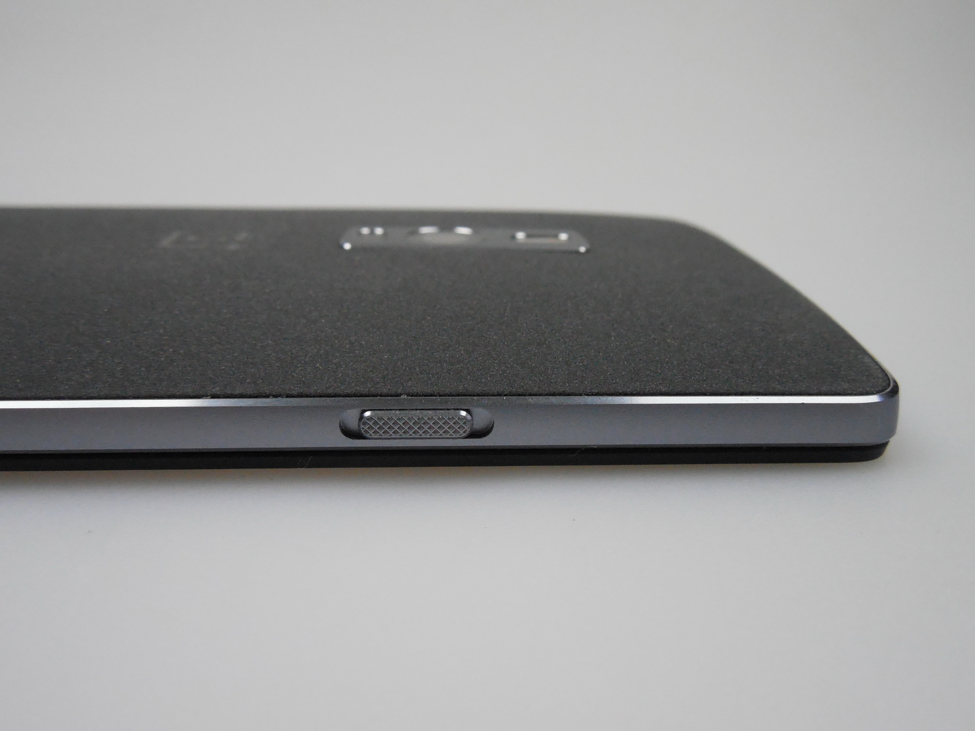 I have to say that the OnePlus 2 is not a very comfy or aesthetically pleasing handset, since it’s massive and it’s angular frame aren’t a very nice fit to our palms. It feels cold and tough and upfront we find the selfie camera, status/notification LED, sensors, earpiece, Home button (capacitive with fingerprint scanner included) and 2 extra capacitive buttons. They aren’t marked with symbols, just with lines that lit up.