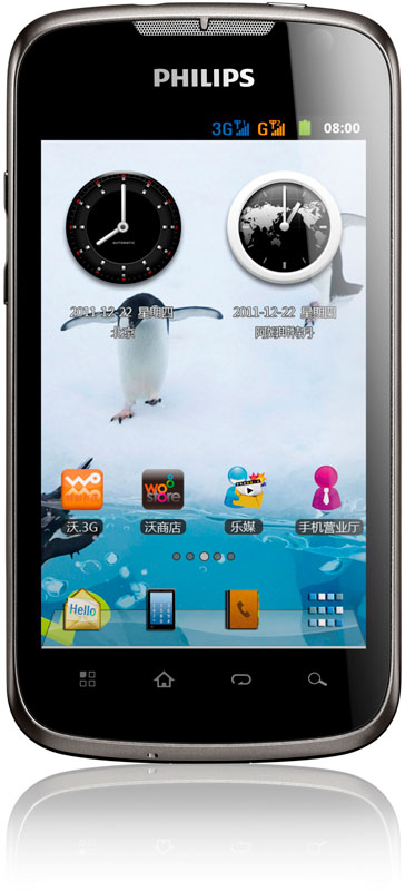 Said display is a WVGA touchsreen and we’ve also got a 5 megapixel camera with autofocus on board. The Philips W635 can act as an USB modem and WiFi hotspot and it also comes with GPS and support for 7.2 Mbps HSDPA connectivity. Last I heard about Philips, they were making phones with outstanding battery life, so that’s what sets them apart from rivals. Back to the dual SIM W635, this device weighs 157 grams, runs Android 2.3 and measures 11.5mm. Its CPU is a Qualcomm MSM7227A, accompanied by 512MB of storage, with 70MB available to the user.