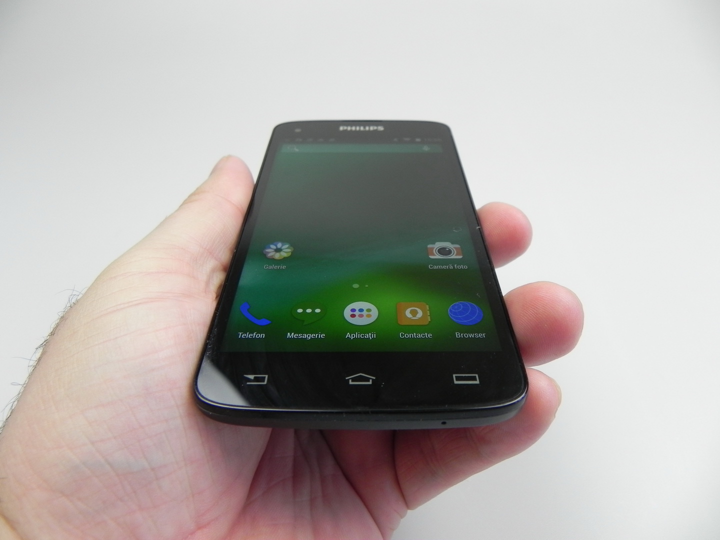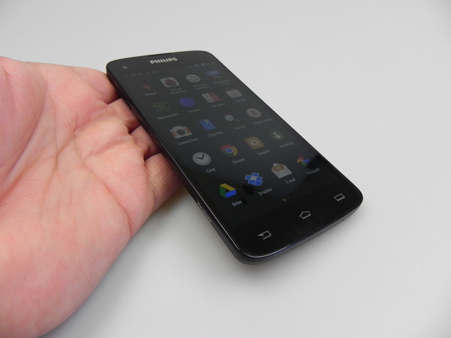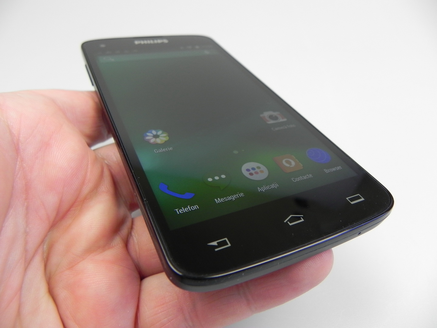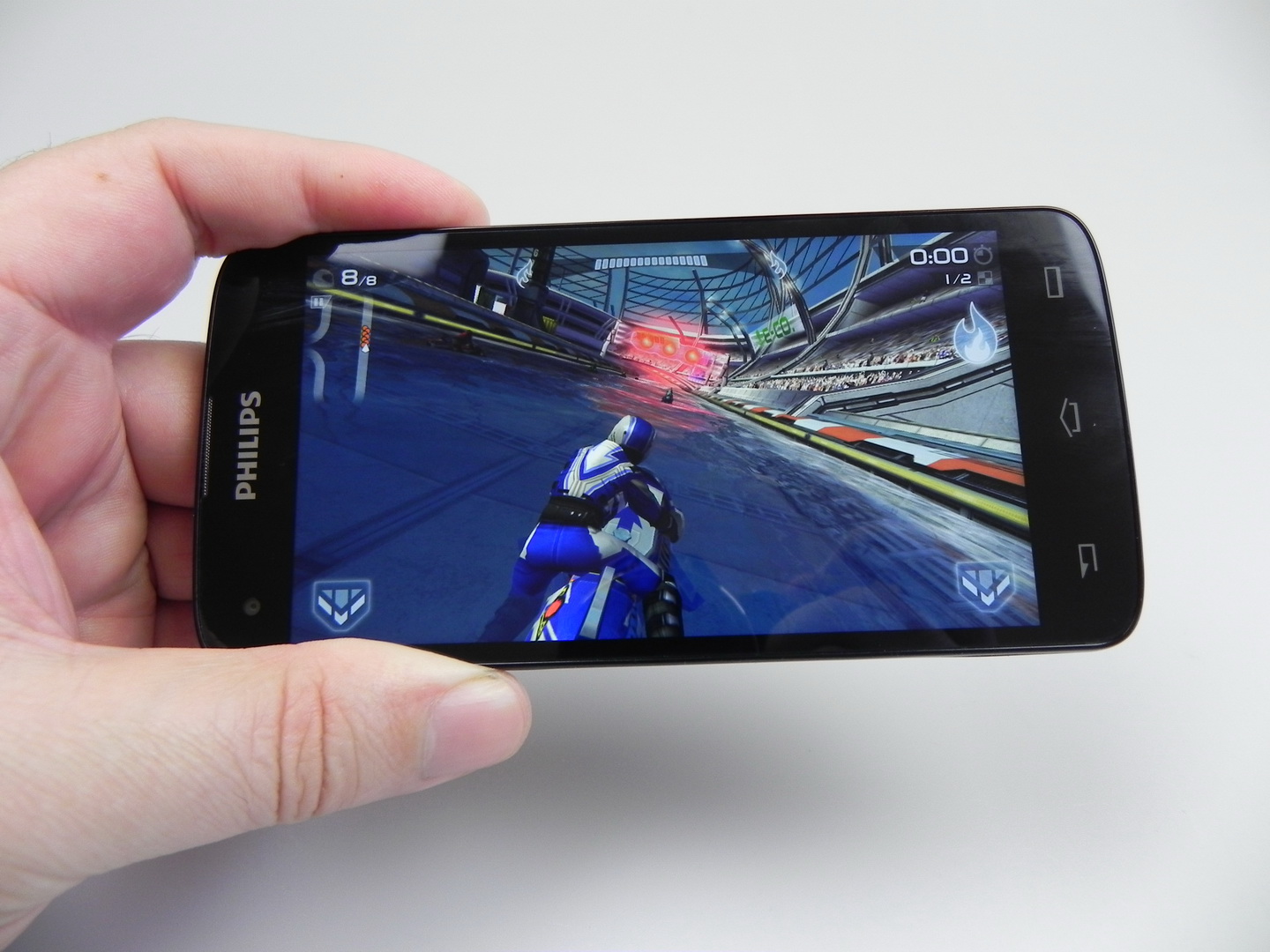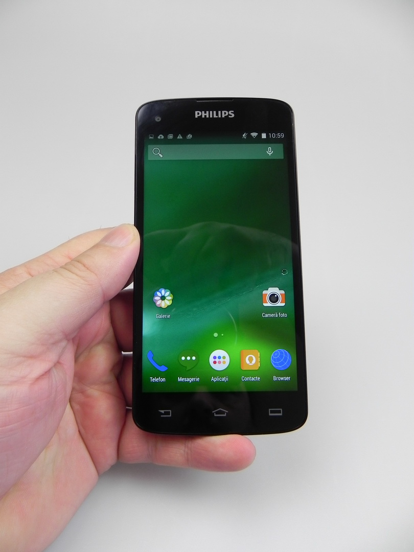 The Philips unit wins 3 out of 10 battles, which is unimpressive, but we don’t have a big lag here. We do have an UI that’s not as fluid as we’d ideally like it to be. We still can run the game Riptide GP2 without problems and with some graphics effects enabled. The OS here is Android 4.4.2, in a stock version with minor customization, usually related to some icons.