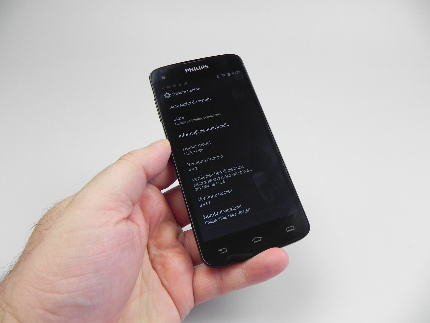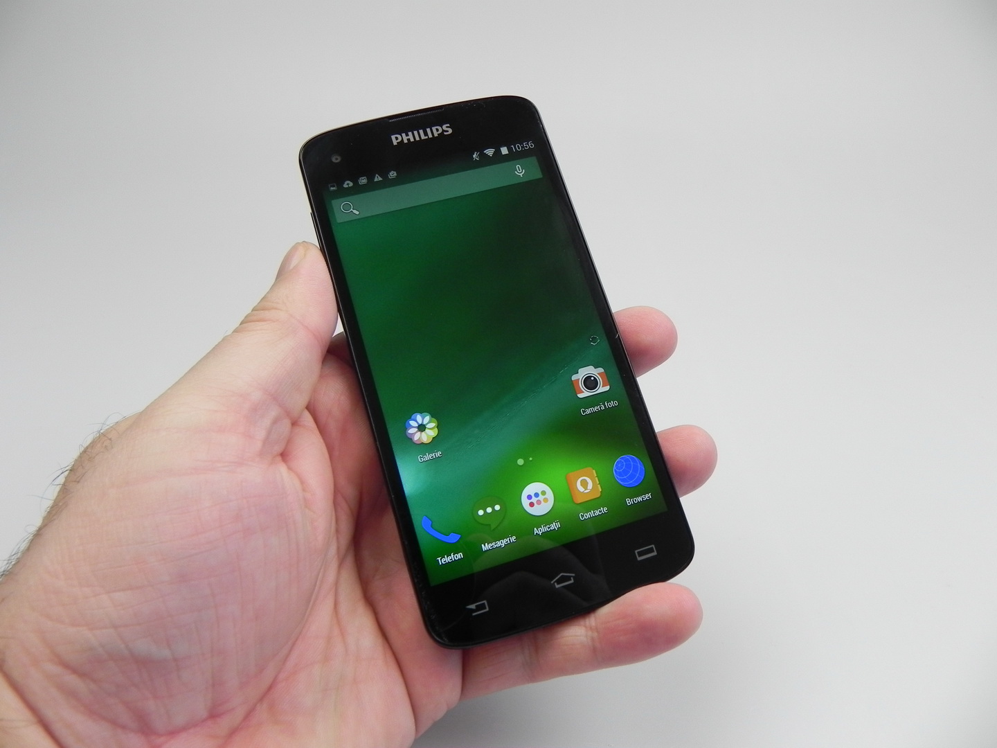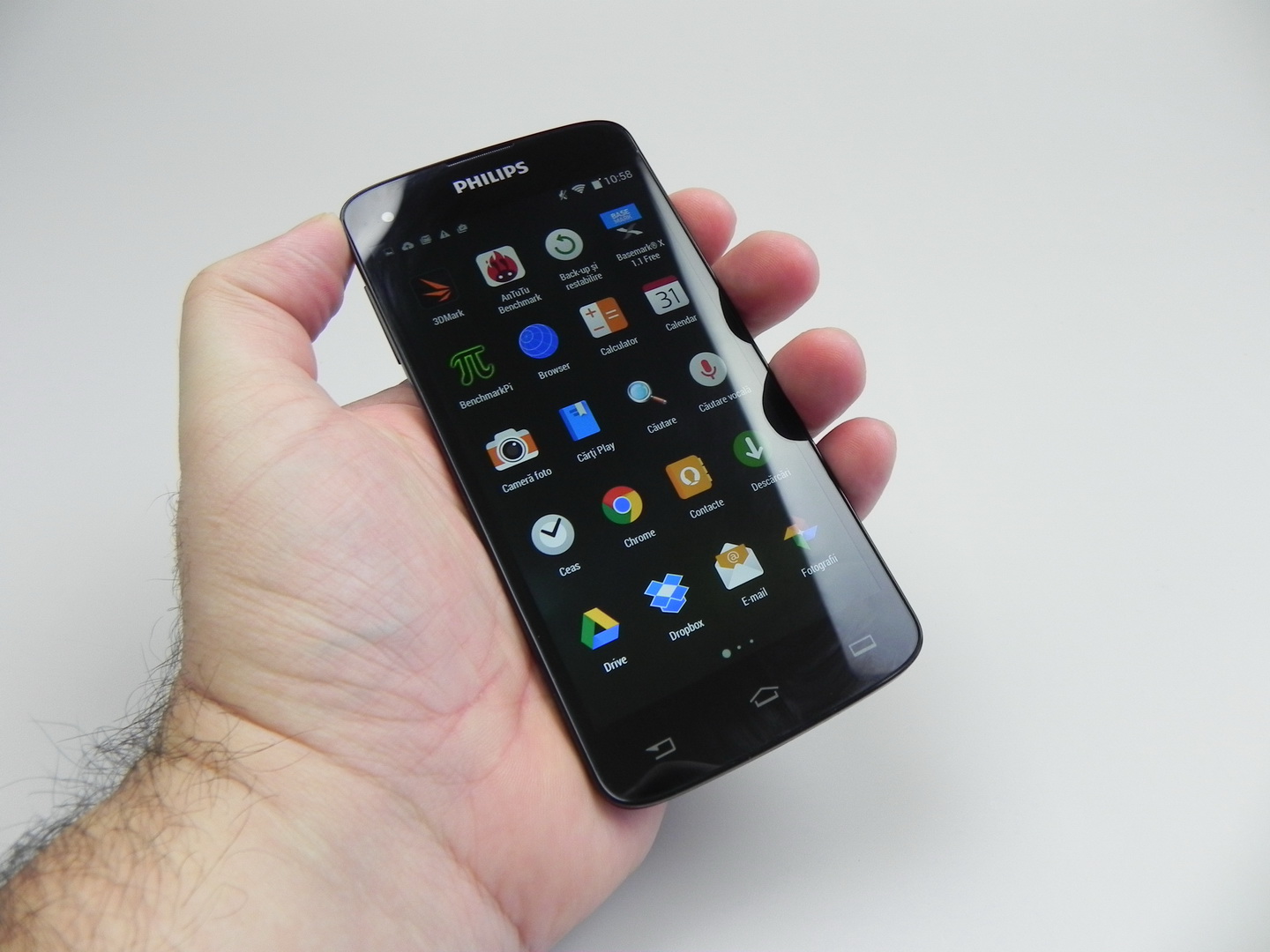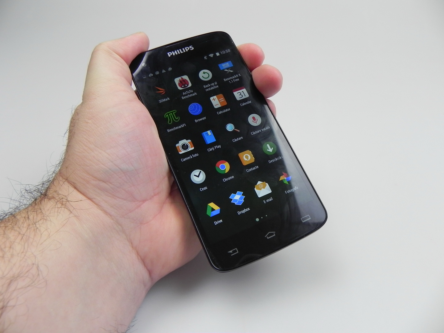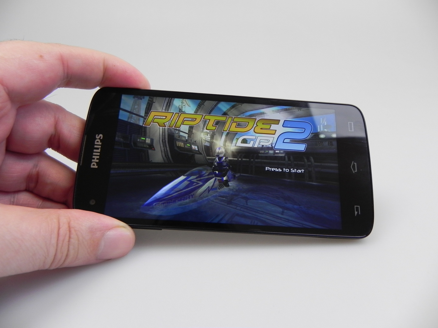 The Philips unit wins 3 out of 10 battles, which is unimpressive, but we don’t have a big lag here. We do have an UI that’s not as fluid as we’d ideally like it to be. We still can run the game Riptide GP2 without problems and with some graphics effects enabled. The OS here is Android 4.4.2, in a stock version with minor customization, usually related to some icons.