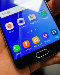 Buttons are comfy and one hand usage is quite easy. It’s a premium phone, with a solid build and a good looking, actually being one of the best looking sub $400 phones. I should also mention, it’s a bit of a fingerprint magnet. The hardware includes a 5.2 inch screen with a Super AMOLED panel and Full HD resolution, an upgrade from the Galaxy A5’s HD screen.