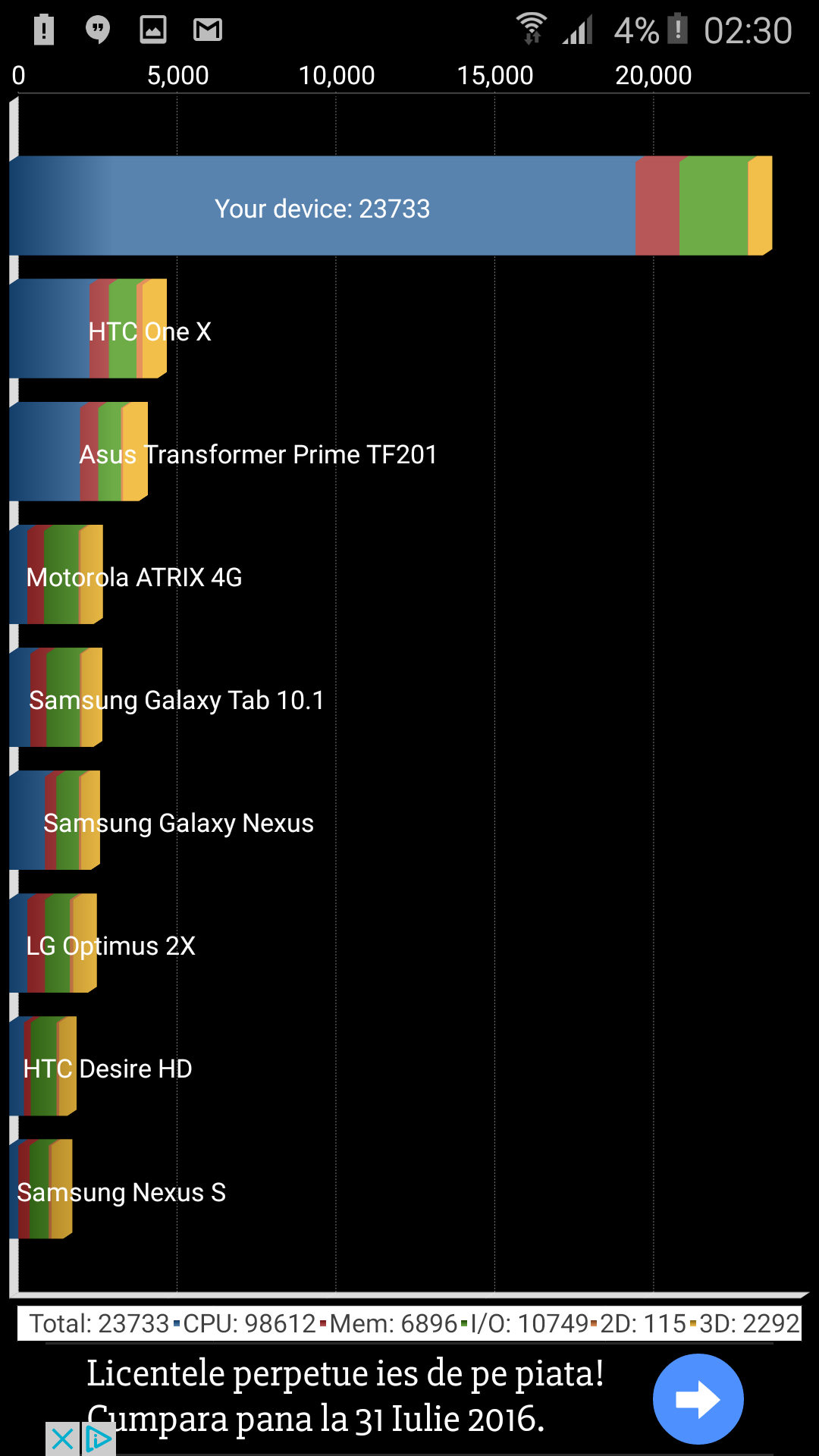 On the connectivity front, we’ve got a nano SIM card slot, 4G LTE Category 4, with up to 150 Mbps download speed, microUSB 2.0, ANT+, WiFi a/b/g/n, NFC, Bluetooth 4.1, WiFi Direct, GPS and Glonass. The calls are loud and clear, the signal is good and so is the microphone. The Speedtest revealed a value of 26 Mbps in download and 27 Mbps in upload, being quite good.