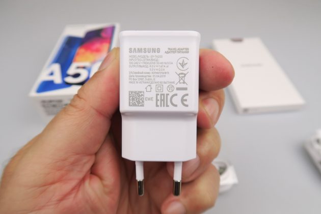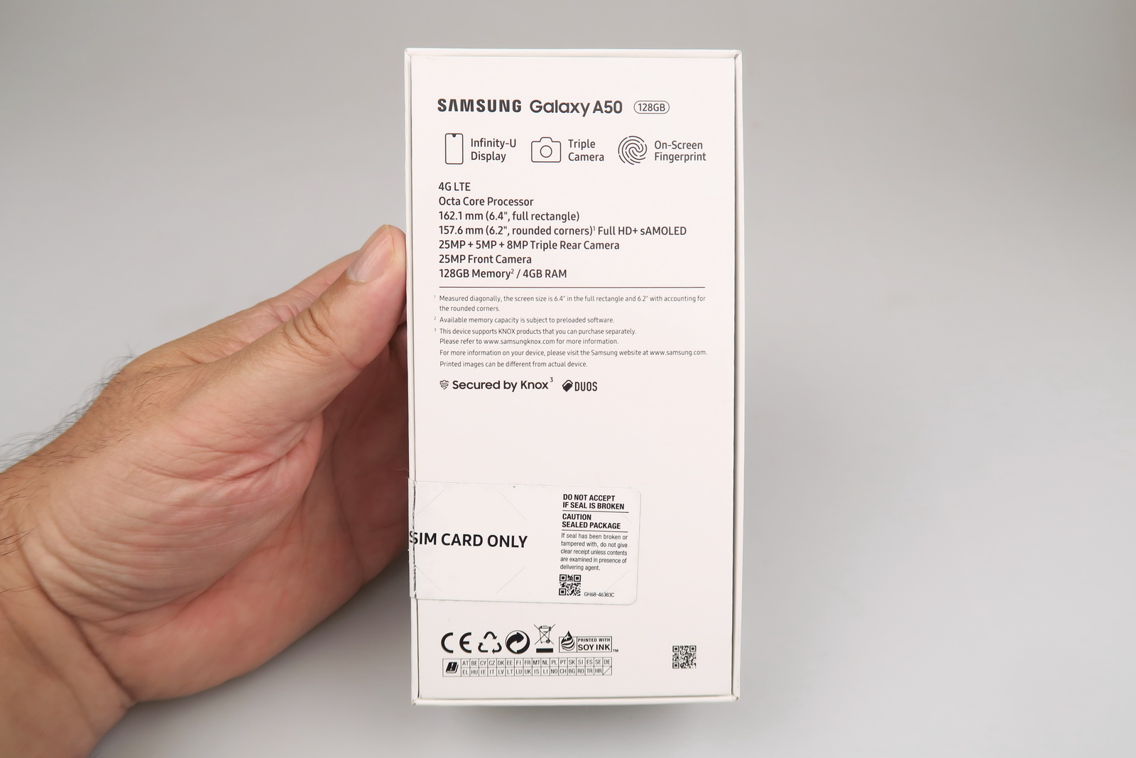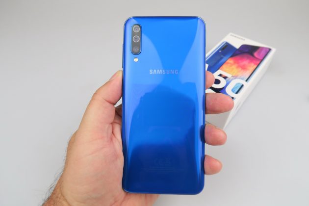 Samsung Galaxy A50 has an Infinity-U Display and it’s the first Samsung phone with a notch, actually a tiny one, a teardrop one. Still, considering that Samsung promised to never touch that, it’s a bit odd to find them with this approach. The device is available in black, white or blue and we have the shiny blue version. The South Korean company is calling this type of body “3D Glasstic” a sort of combo between glass and plastic, at least as a wordplay. In real life, it’s actually an unibody polycarbonate case, that feels much cheaper than the past Galaxy A models.