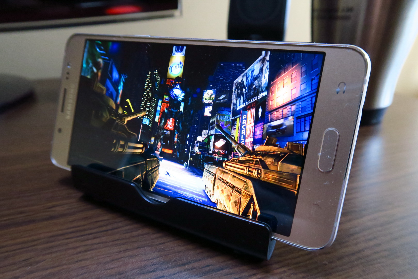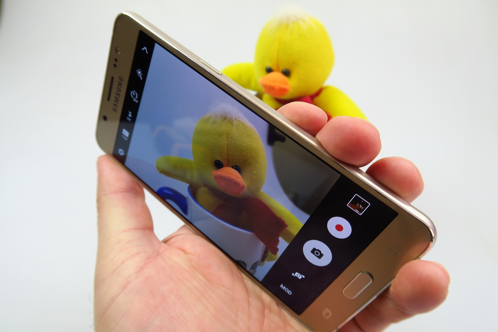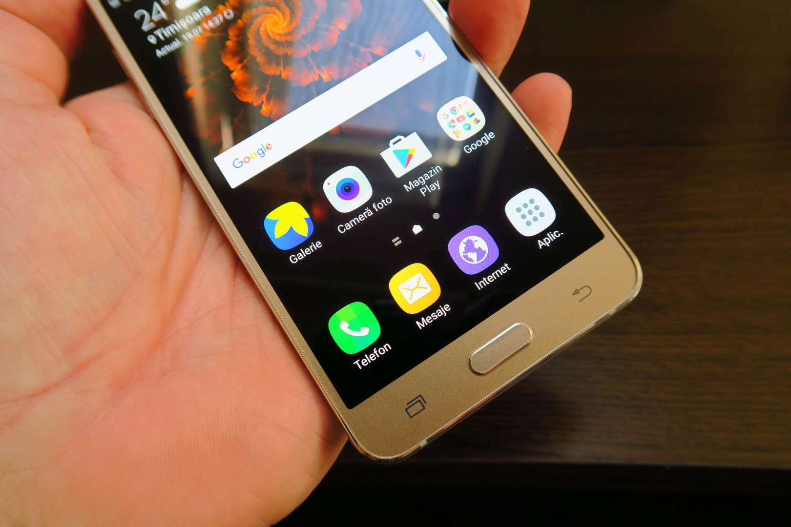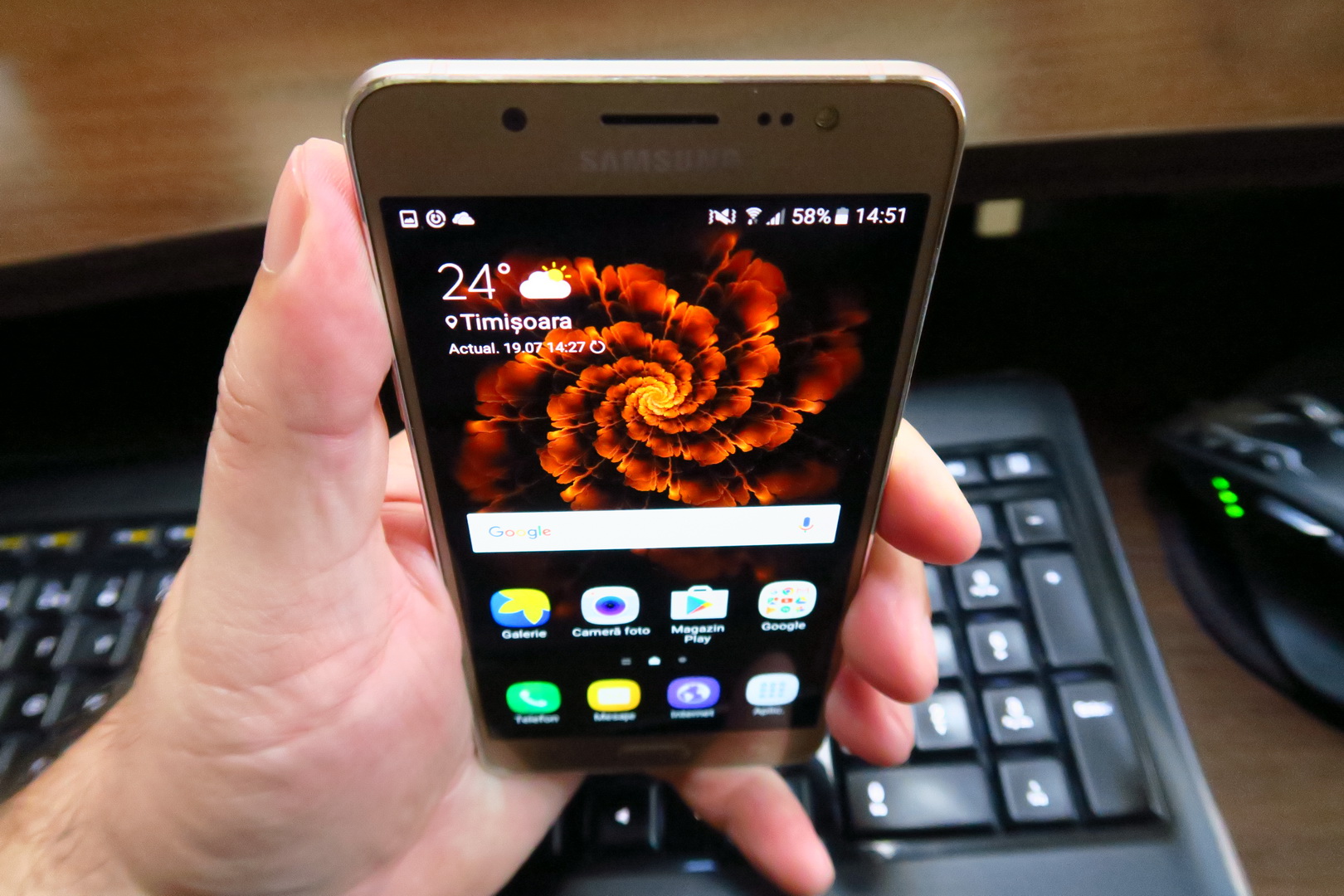 The display is quite good, but below the Galaxy A 2016, if you really want a comparison. As far as the CPU goes, we’ve got a quad core Snapdragon 410 here, the same chipset as the J5 before it. We get an Adreno 306 GPU, 2 GB of RAM, a 512 MB boost from the predecessor, 16 GB of storage and a microSD card slot. Apps fire up fast and there’s no lag, plus the UI is fluid.
