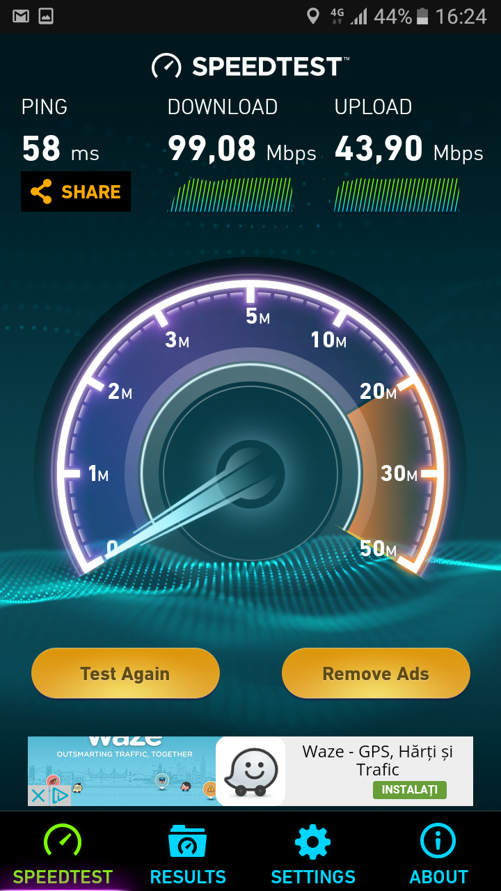 Other connectivity options include NFC, microUSB 2.0, USB OTG, GPS and Glonass, plus Bluetooth 4.1 and WiFi b/g/n. There’s ANT and WiFi Direct too. Calls have good volume, but they’re not perfectly clear. At least the mic is good. Speed Dial is also here and then we did a SpeedTest, achieving 99 Mbps download speed via 4G and 43 Mbps in upload.
