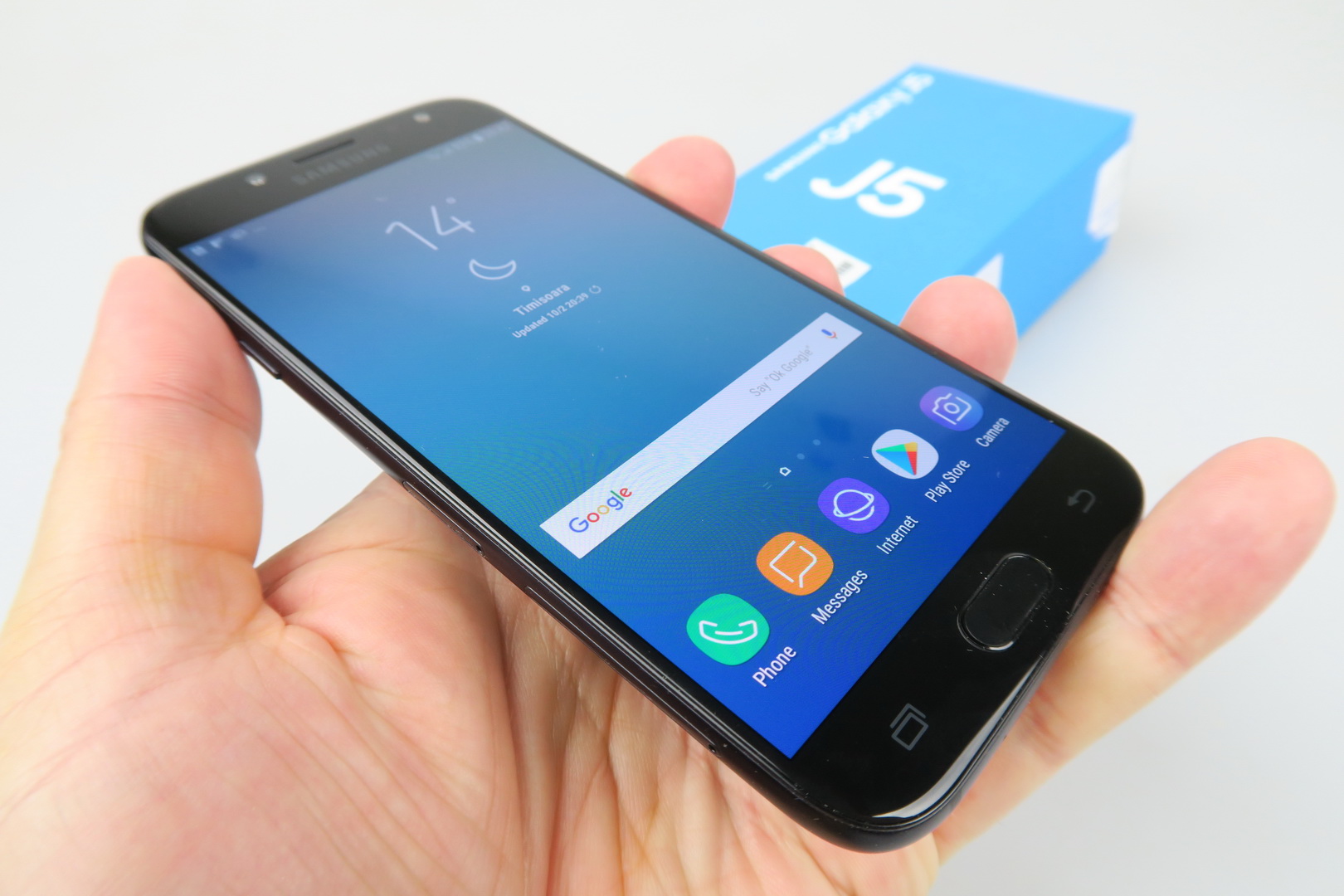 I would even go as far as to say it feels nicer than the Galaxy A5 (2017). It’s made of metal, with a brushed and matte finish, reminding me of the vibe of an iPad or iPhone even. The new J5 measures 8 mm in thickness, weighs 160 grams and packs a 5.2 inch screen with HD resolution and a Super AMOLED panel. The same screen was present on the predecessor, so we can’t tell if an ugprade is present till we test the device.
