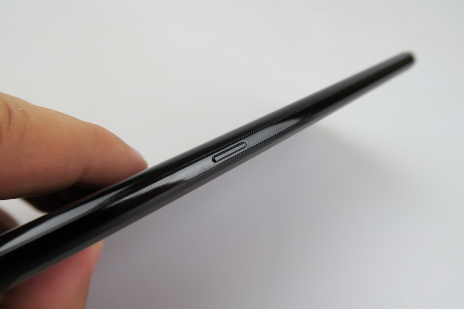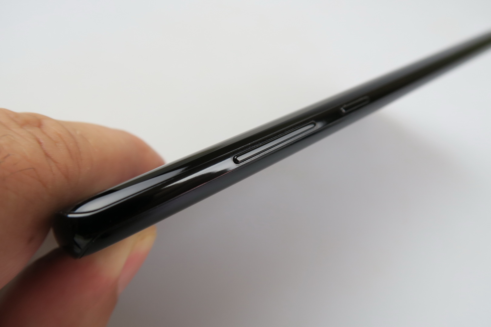 This 6.3 inch phablet is very narrow, although it’s long, which makes it easy to wield, even with a single hand. By the way, for those of you wondering, we’ve got the black, Exynos 8895 64 GB dual SIM model. The handset is very long and narrow, plus it has curved glass panels at both the front and back. The metal frame is sandwiched between them and the grip is quite good.
