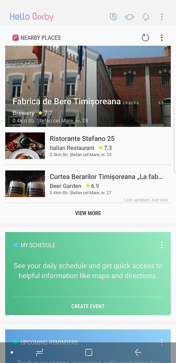 Its dedicated homescreen includes nearby places, weather, activity, health and news. Bixby is capable of showing reminders, proposes actions and suggestions, recognizes objects with Bixby Vision and you can even use voice command to start up Play Store and install an app, everything with voice command. It’s also very snappy and quite natural in responses. I’d say it’s a pretty decent rival for Siri and Google Assistant.