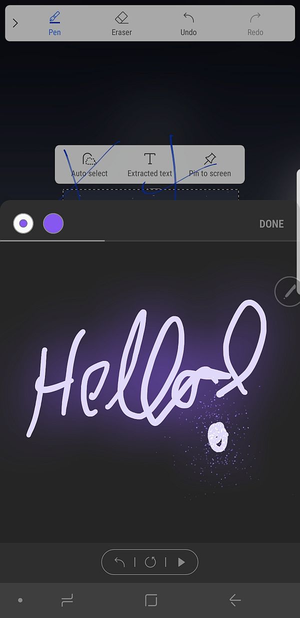 You can even put them on the Always On screen. The features triggered by the stylus include Smart Select, Create Note, Screen Write, Live Mssage, Translate and Bixby Vision, plus Glance and Magnify. Smart Select lets you select portions of the screen to capture and you can even select a bit of a video to turn into a GIF. The Create Note feature lets you write, draw with a variet of brushes, scribble, make lists, whatever you want, using the stylus.