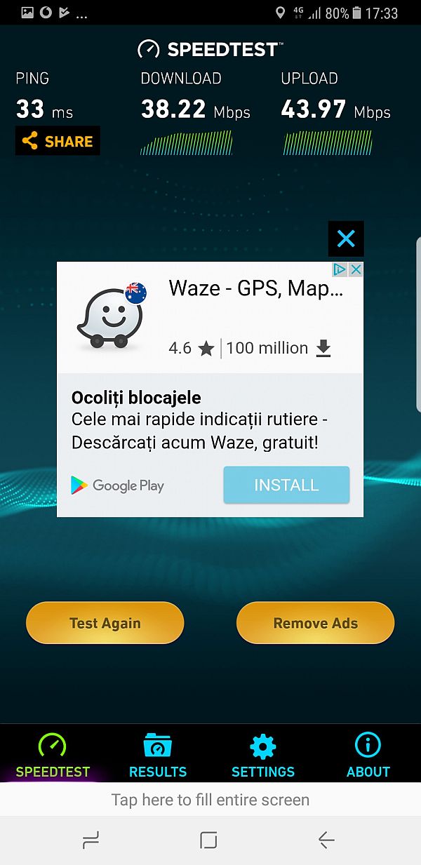 There’s also a single SIM version of the phone out there. Other features include Bluetooth 5.0, Miracast, USB Type-C, LTE Category 16, WiFi 802.11 a/b/g/n/ac with MU-MIMO, GPS, Galileo and Glonass. The Dialer offers a Speed Dial feature and the calls were very loud and clear, plus we had good noise cancelling. The Speed Test we did showed a value of 41 Mbps in 4G downloads and 47 Mbps in uploads. On WiFi we were at 25 Mbps and 26 Mbps on one local company and 66 Mbps and 91 Mbps on another. I’m sure higher speeds can be attained with a proper router and provider. The first one offered 200 Mbps downloads and the second 500 Mbps, but as you can expect, it’s not all there in WiFi and multiple PCs.