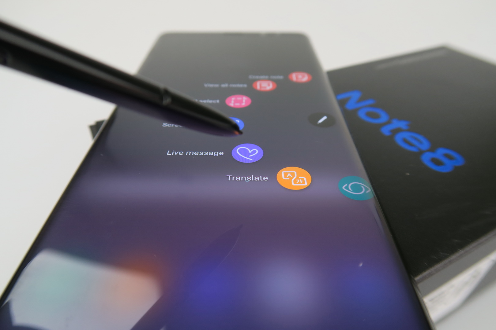 The S-Pen has a clickable end, that makes it easier to pull out and it’s waterproof now. It opens up an Air Command palette with some new options, like Live Message (writing on top of pics and animating the writing with glitter and effects), Translate (in 30 languages) and Bixby Vision. You can also take notes on the standby screen and use the stylus’ 4096 levels of pressure.