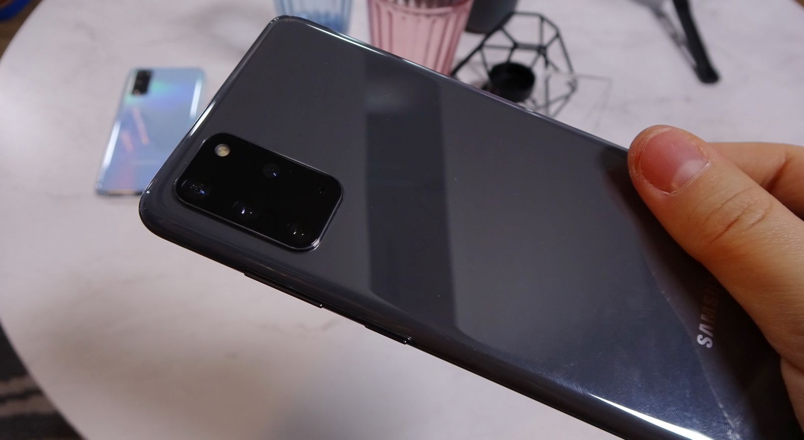 The fingerprint scanner is embedded in the screen and it feels more responsive than the Galaxy S10 one for sure, at least before its software updates came up. Inside the Galaxy S20+ rests the same Exynos 990 CPU that the Galaxy S20 and S20 Ultra use, accompanied by 8 or 12 GB of RAM and 128 or 512 GB of storage, plus microSD card slot. There’s also a 4500 mAh battery with fast charge (wired), as well as version 2.0 of wireless charging, also faster. There’s also reverse wireless charging via the back side.