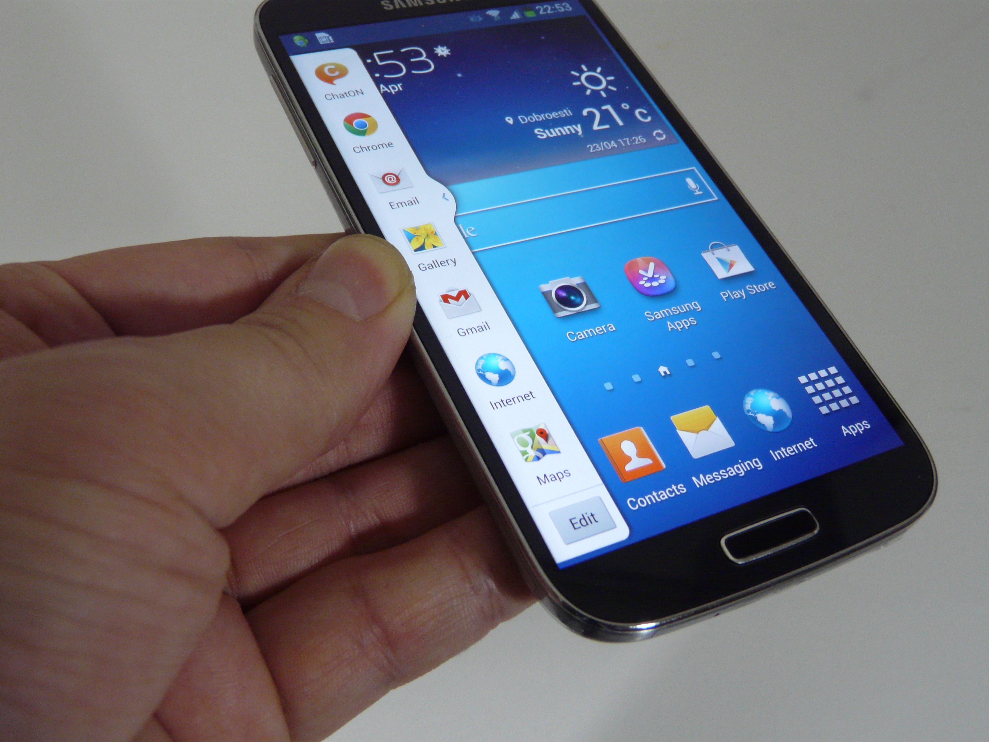 As you probably know, the smartphone comes with 2 versions, one with an Exynos 5 Octa 8 core CPU and the one we have: a quad core Snapdragon 600 unit. Most of the world will get the quad core version in the initial launch, with at least 70% of the first 10 million units being quad core. This handset comes with a microSIM card slot, a 7.9 mm thick case, which is quite a bit thinner than the Galaxy S III 8.6 mm case.