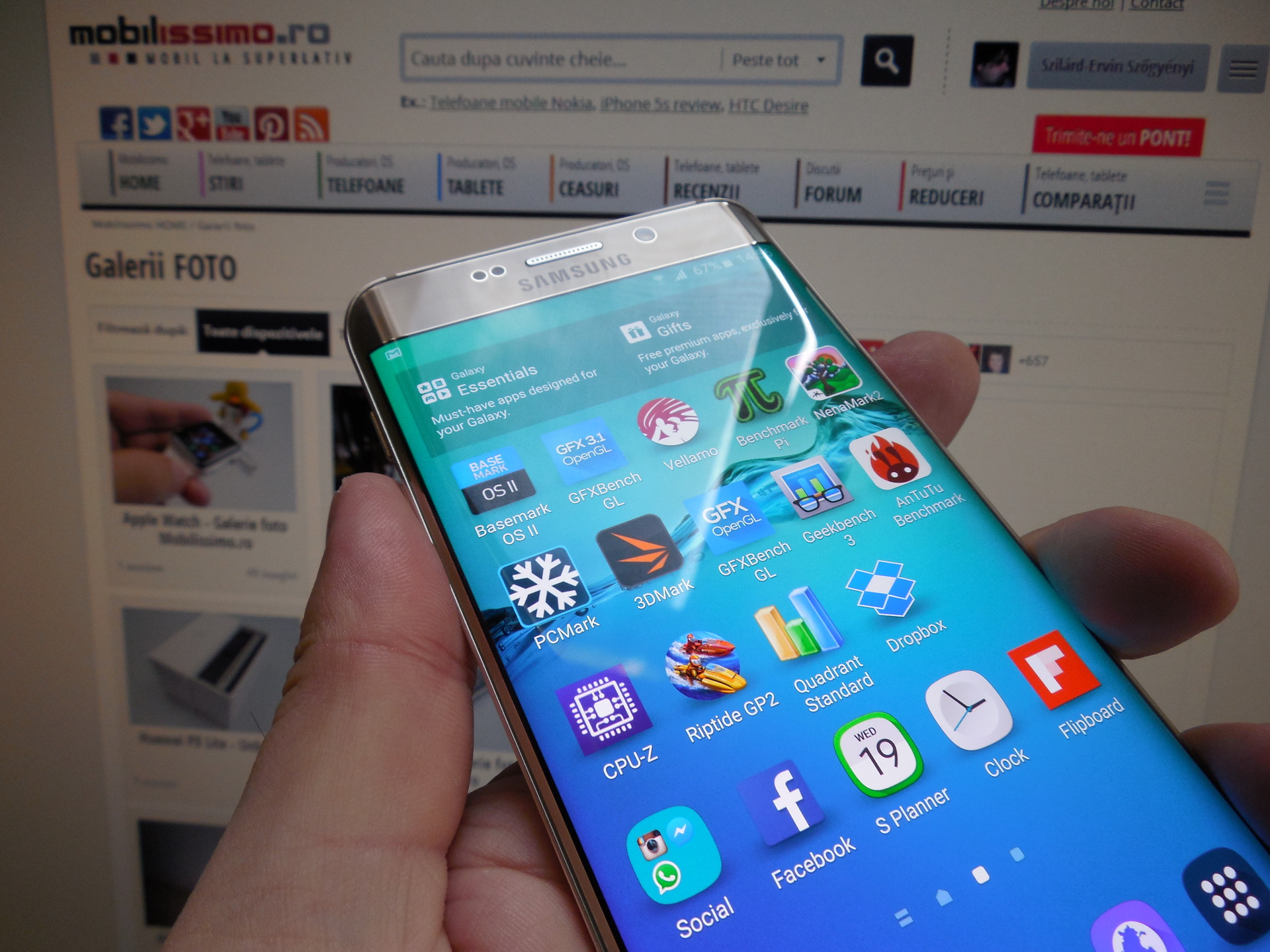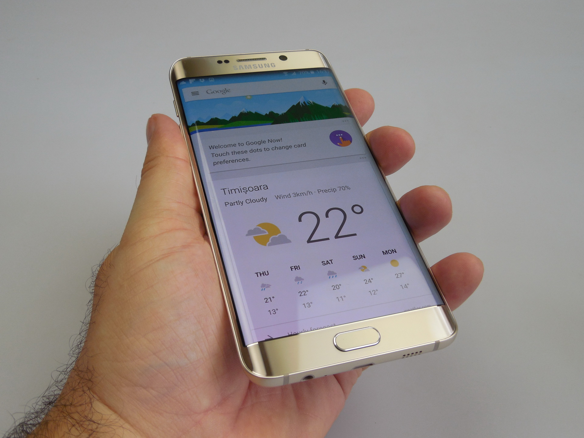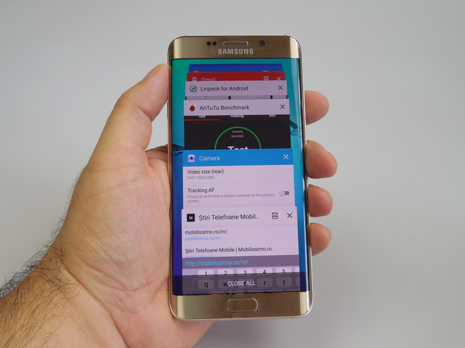 Overall, this is an elegant and stylish smartphone, with a solid build and it’s the most beautiful Android phone that money can buy right now. I found it hard to believe that the Galaxy S6 Edge could be topped, but it has been, by this model. On the hardware side, we’ve got a 5.7 inch display, a Super AMOLED Quad HD unit, while inside the handset there’s an octa core Exynos 7420 processor, a 64 bit 14 nm chipset that includes 4 cores clocked at 2.1 GHz and 4 cores clocked at 1.5 GHz.