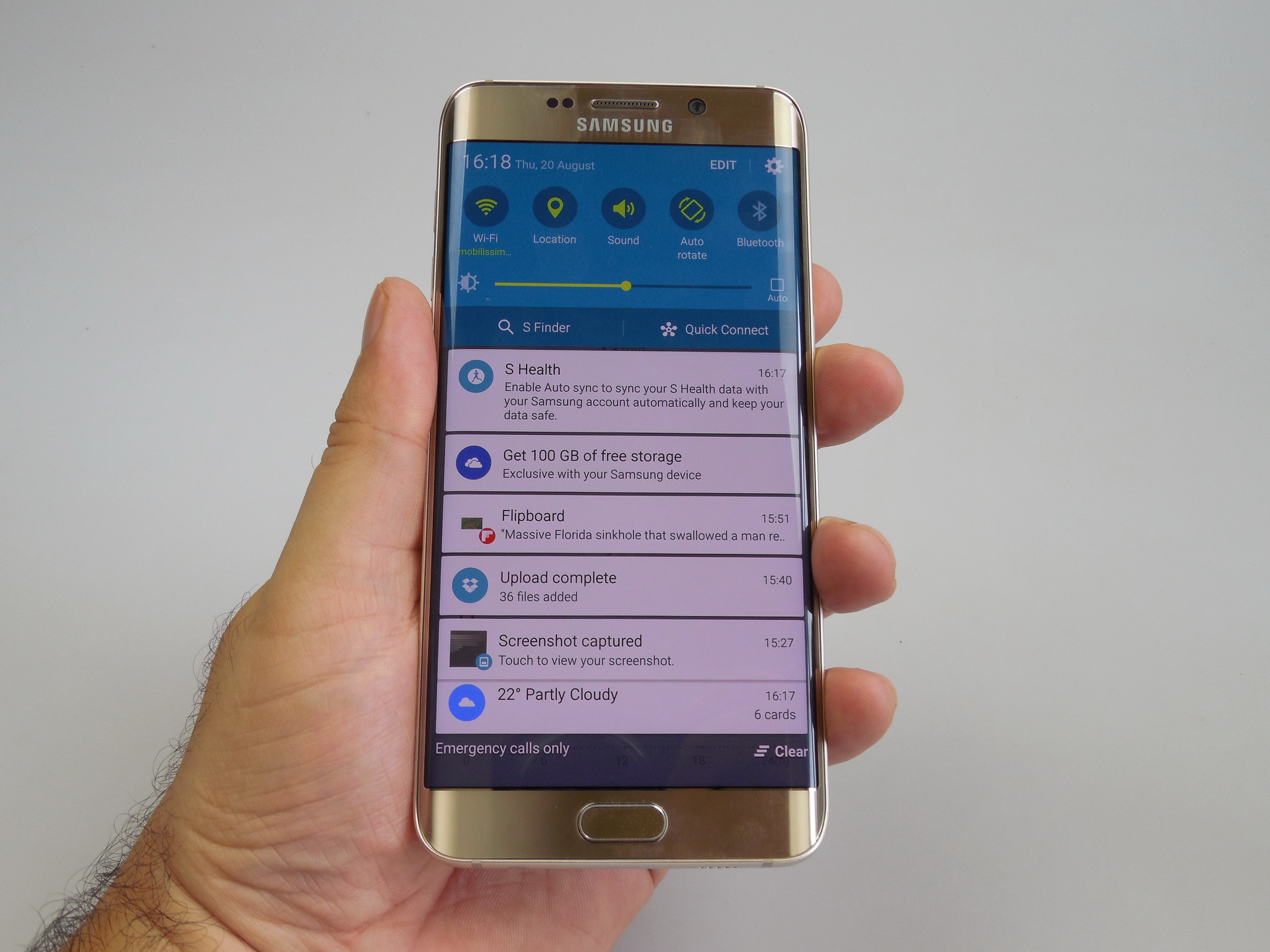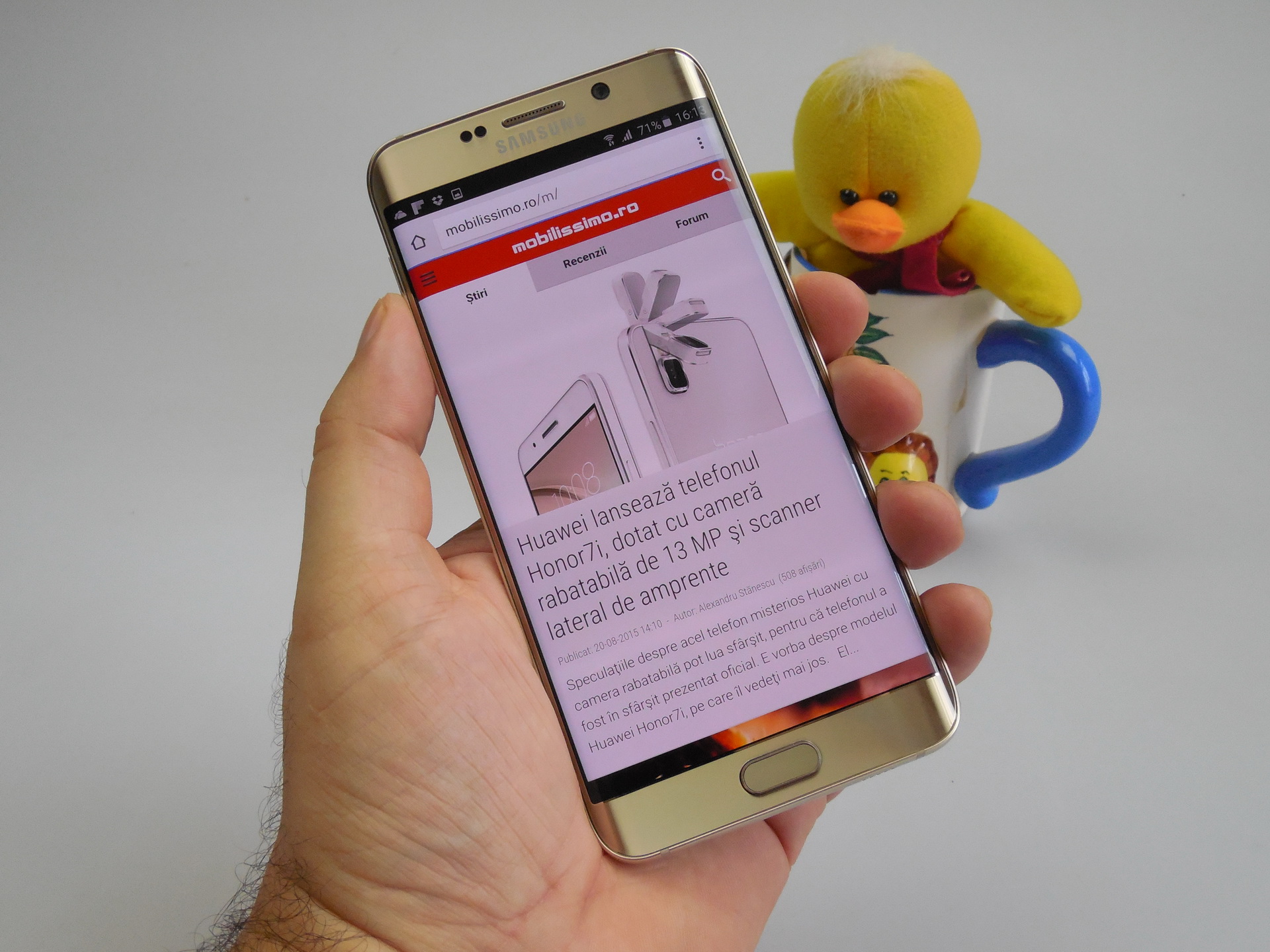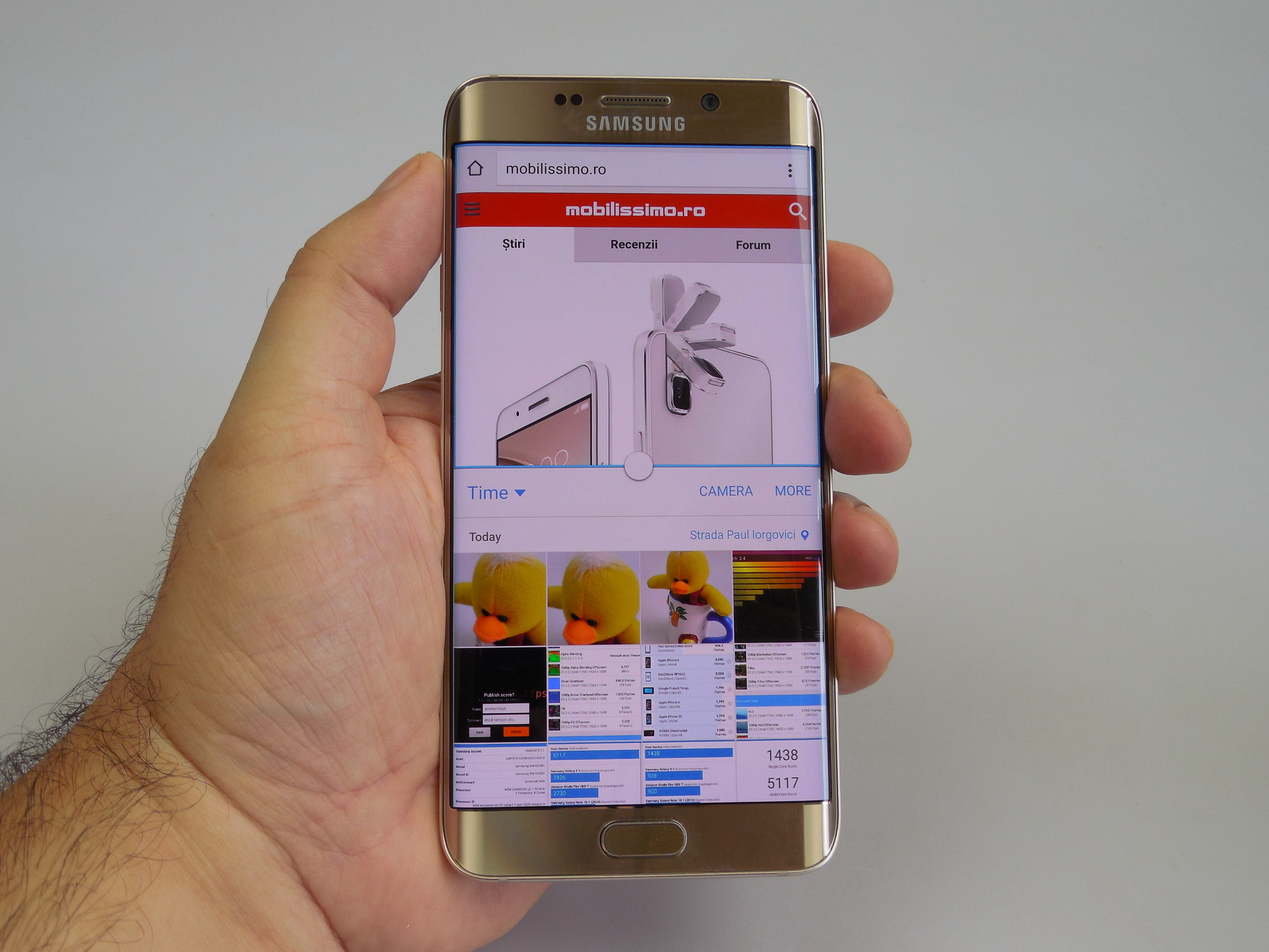 Overall, this is an elegant and stylish smartphone, with a solid build and it’s the most beautiful Android phone that money can buy right now. I found it hard to believe that the Galaxy S6 Edge could be topped, but it has been, by this model. On the hardware side, we’ve got a 5.7 inch display, a Super AMOLED Quad HD unit, while inside the handset there’s an octa core Exynos 7420 processor, a 64 bit 14 nm chipset that includes 4 cores clocked at 2.1 GHz and 4 cores clocked at 1.5 GHz.