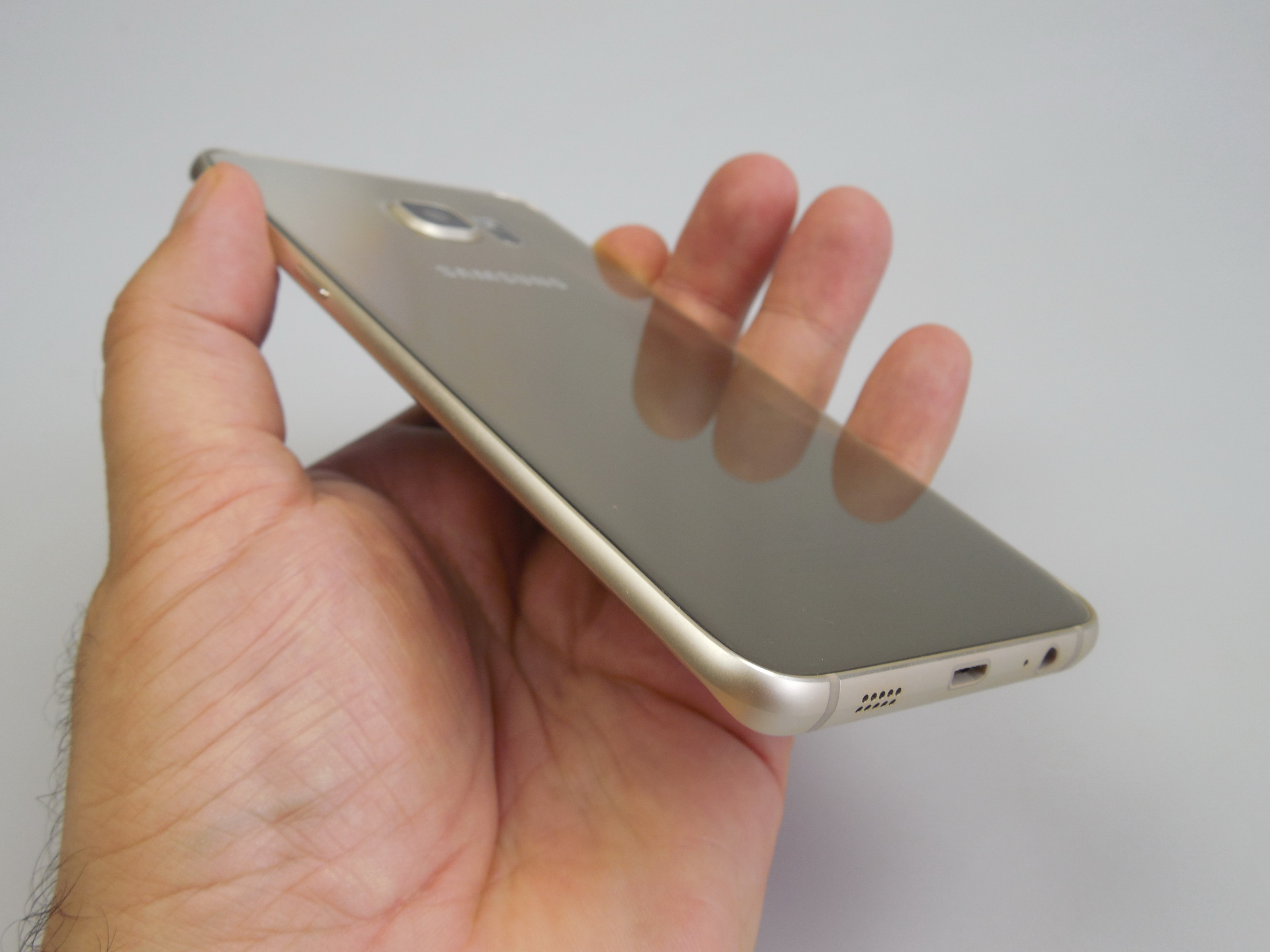 The design involves a metal frame, sandwiched between 2 glass panels. It measures 6.9 mm in thickness, so it’s slimmer than the 7 mm of the Galaxy S6 Edge, but obviously the device is heavier at 153 grams versus 132 grams (S6 Edge). This feels very light for such a big screen phablet and this model adopts an unibody design, without a removable battery and a microSD card slot.