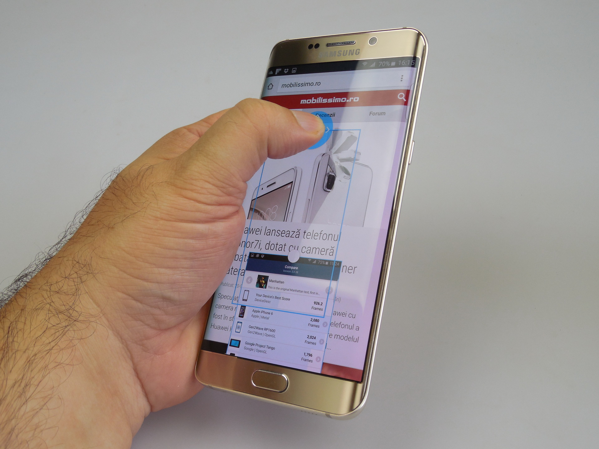 The quality of construction is impecable and the chassis is solid and comfy. The phone is a bit slippery, but its slightly sharp edge helps with the grip. The back is a fingerprint and grease magnet, especially the gold version, the one we tested. This handset is 12.3 mm longer than the Galaxy S6 Edge and because of the device’s length, it’s quite hard to reach the pulse sensor properly.
