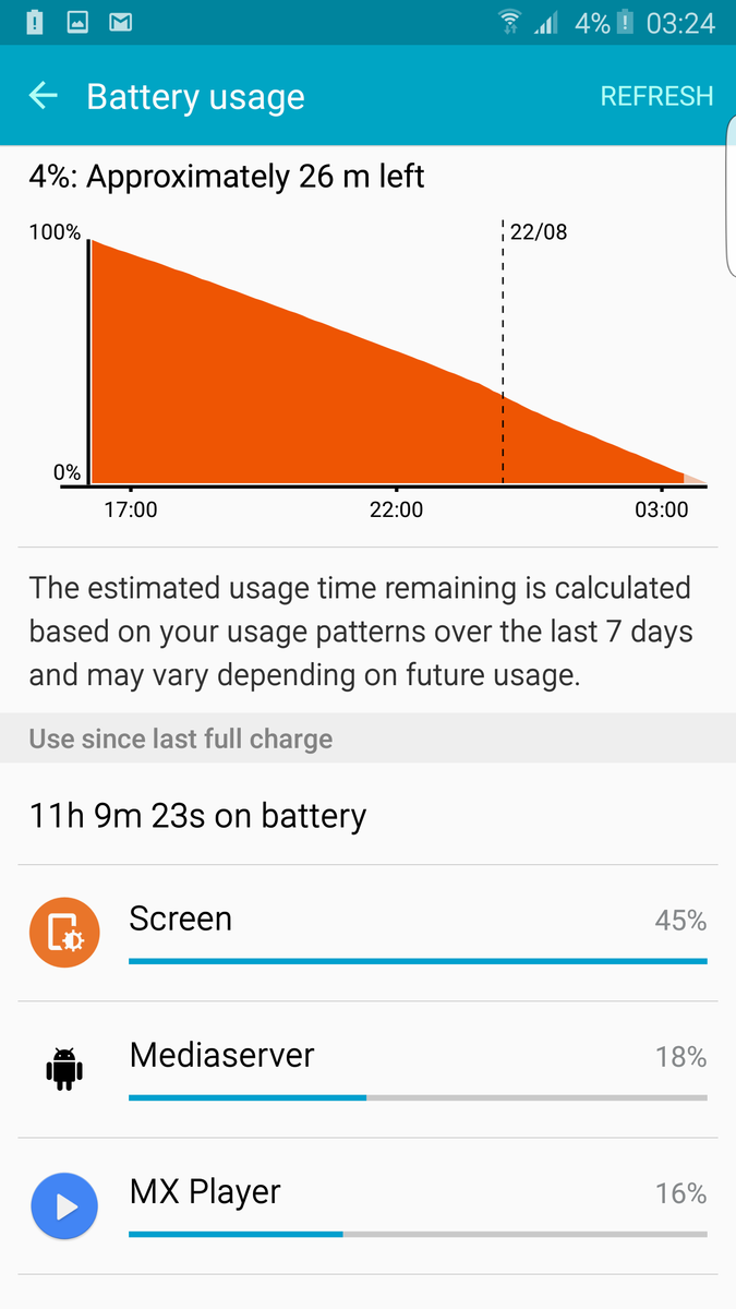 The battery of the phablet is a 3000 mAh unit (Li-Ion), an upgrade from the Galaxy S6 Edge’s 2600 mAh power source. On paper this battery offers 28 hours of talk time or 14 days of standby. In our test, that involves HD video playback in a loop, with WiFi on and brightness at 50%, we achieved 11 hours and 9 minutes, which is great. We beat the Galaxy S6 Edge and its 10 hours and 47 minutes, as well as the Galaxy S5 and its 11 hours and 4 minutes. The S6 was also beaten, at 9 hours and 49 minutes.