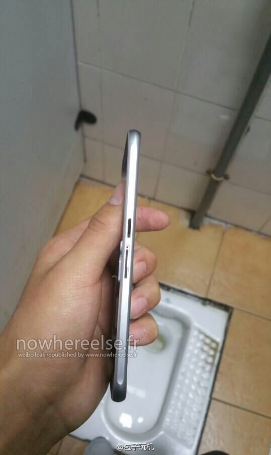 Obviously we take these shots with a rain of salt and I have to say that the frame looks quite wide. It’s clear there’s a bit of secrecy around it, since the photos were taken in the bathroom. The design reminds me a bit of the Xperia Z2 and the iPhone 6, with flat edges, but also slightly curved at the corners. The device looks slim, judging by the frame and the camera hole is square and placed at the center, just like in previous leaks.