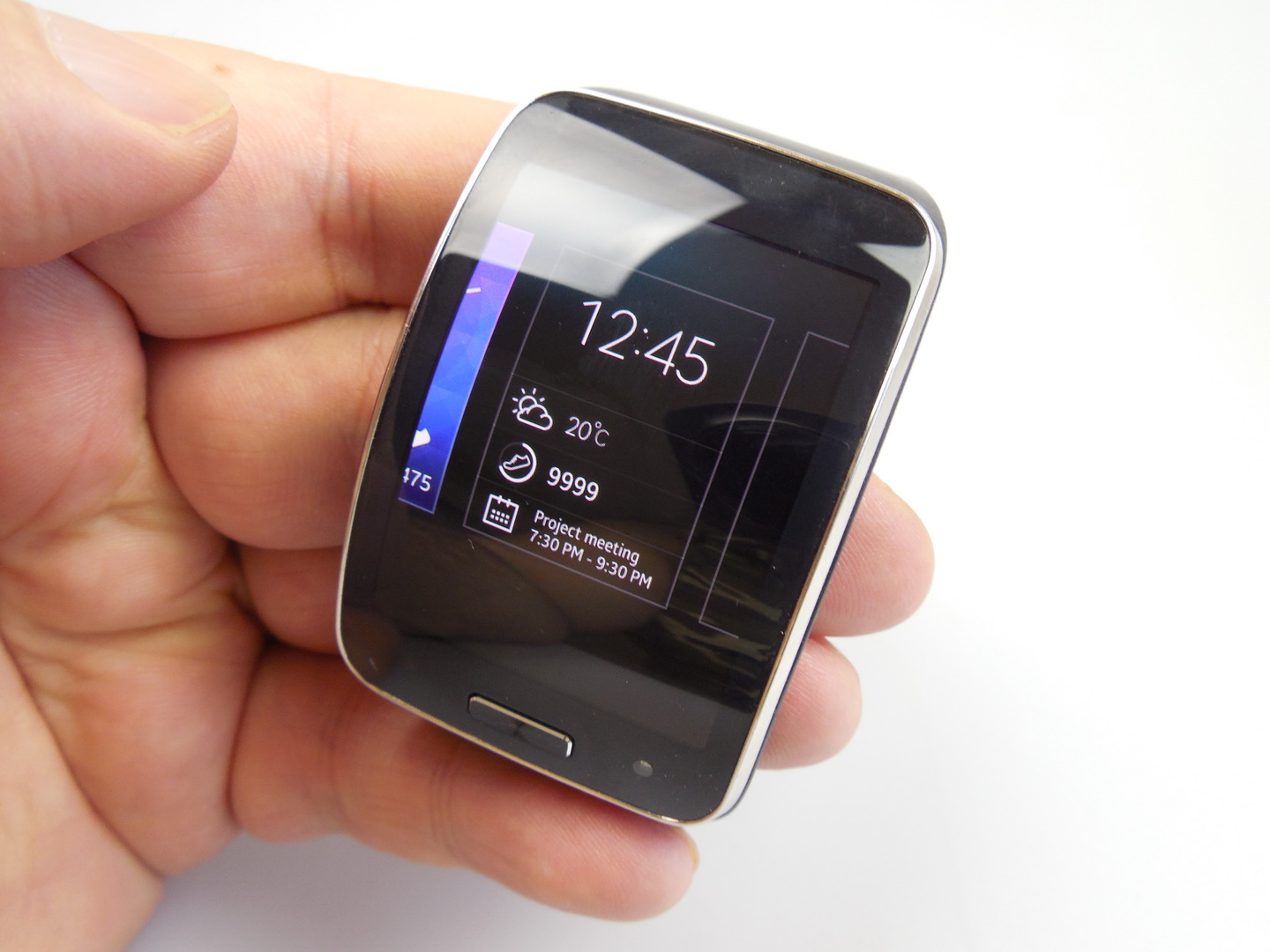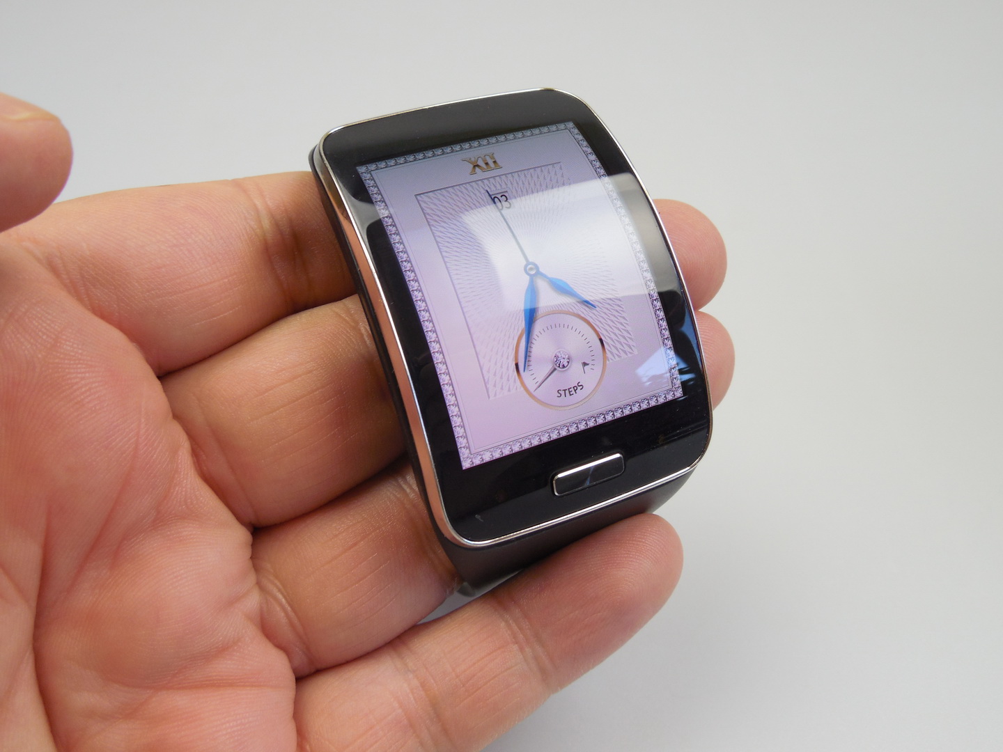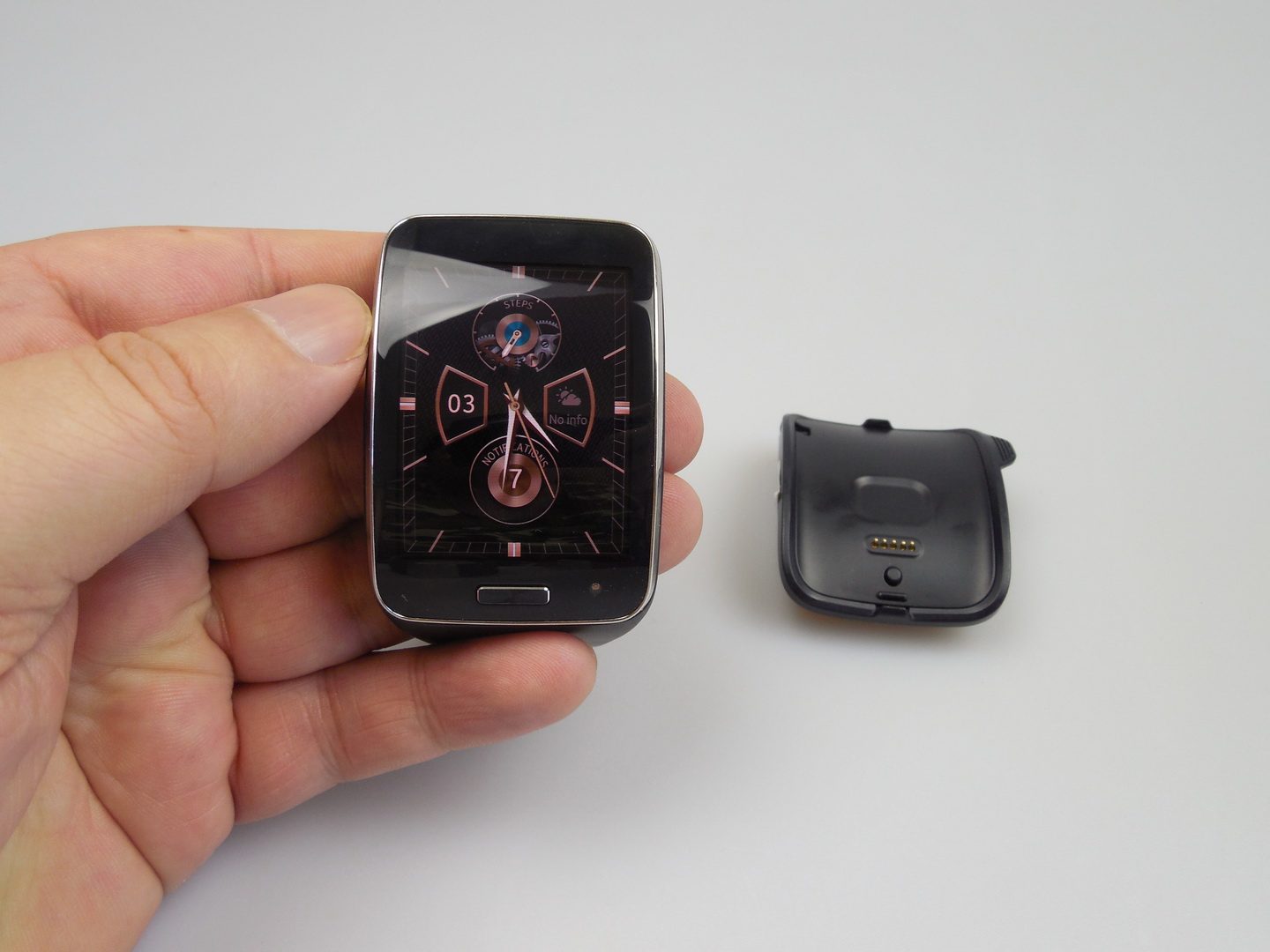 The charging of the Gear S takes in total 2 hours and 20 minutes, with cradle included. The battery life is OK and you should know that a fitness session that’s a bit longer may drain as much as 30% of the battery. Now we analyze the audio, that’s crisp and reasonably loud, with the keyboards well heard in songs and a bit of distortion happening at maximum volume.