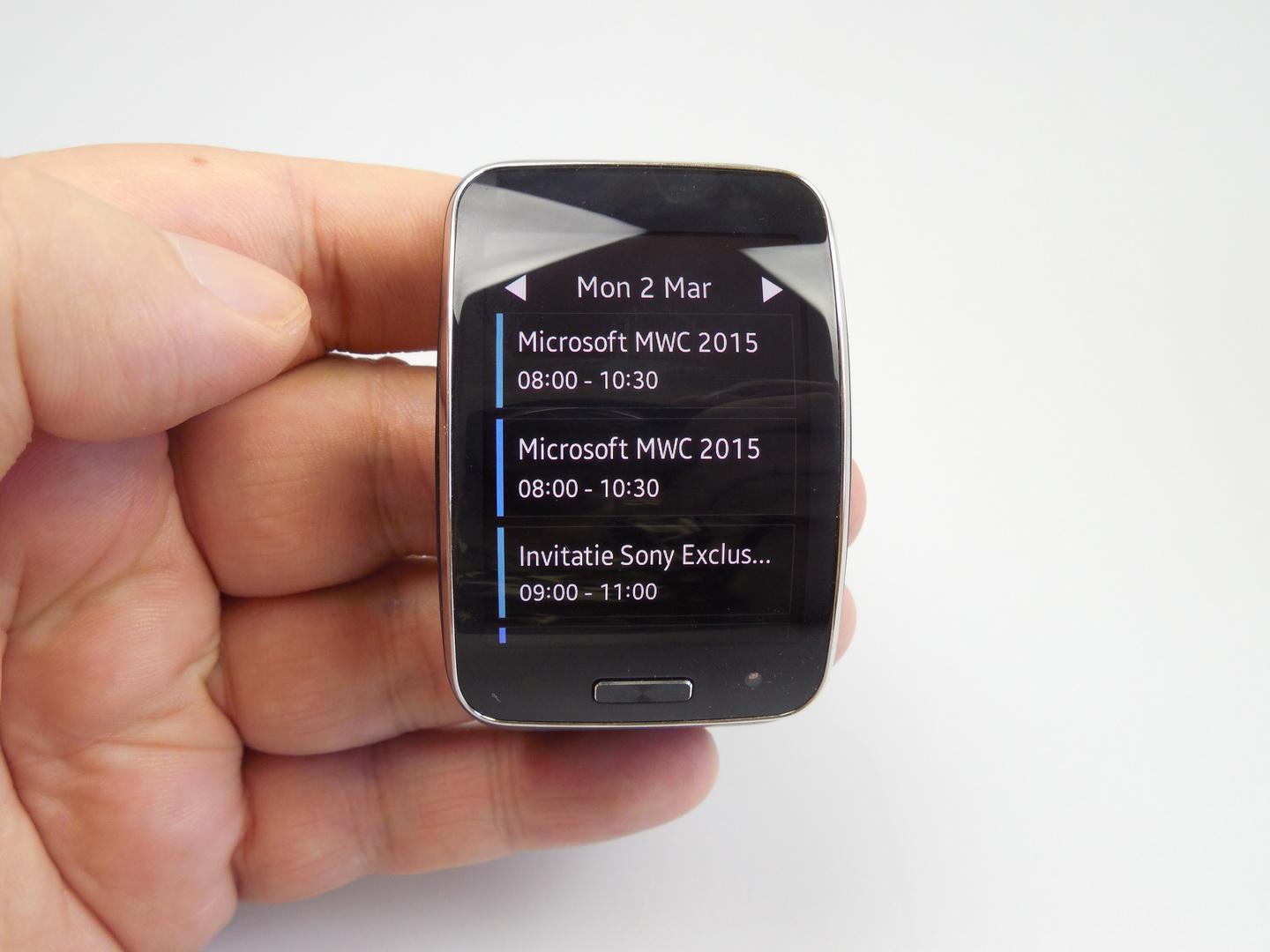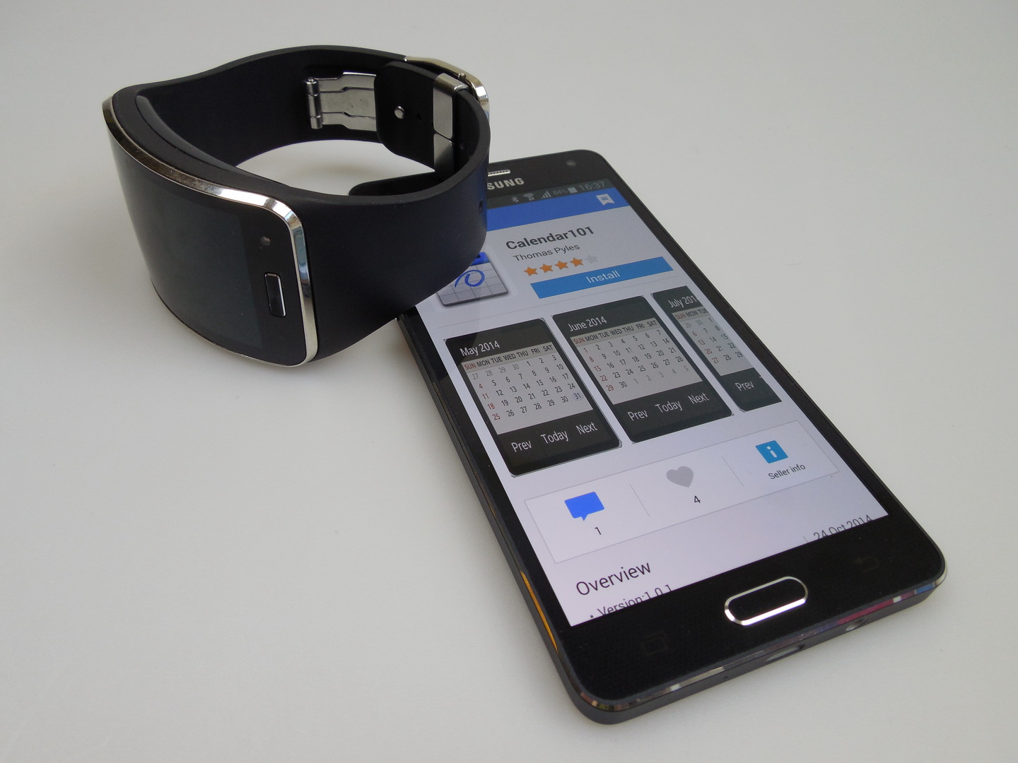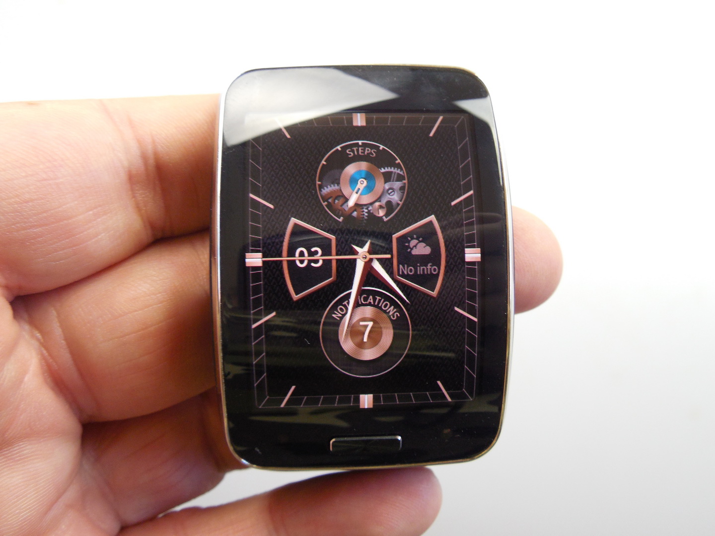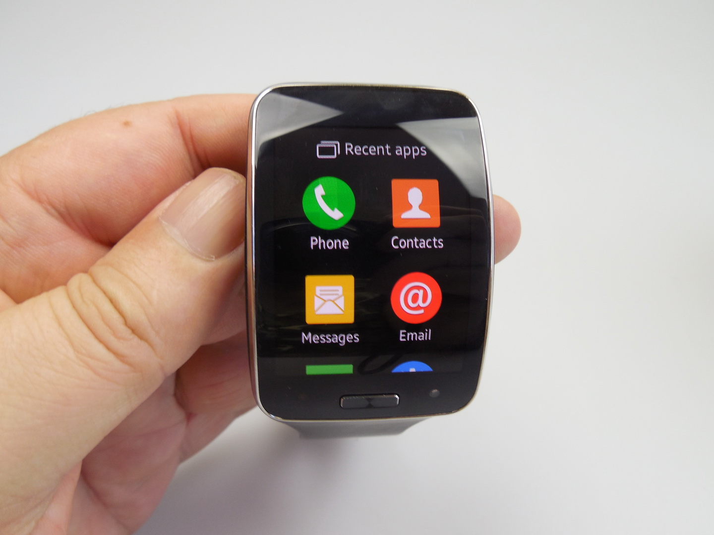 Samsung Gear S is probably the best specced Samsung smartwatch and one of the best specced watches on the market. This model was announced in the summer of 2014 and launched in the fall. This is a smartwatch used as a phone and it works independently from the handset.