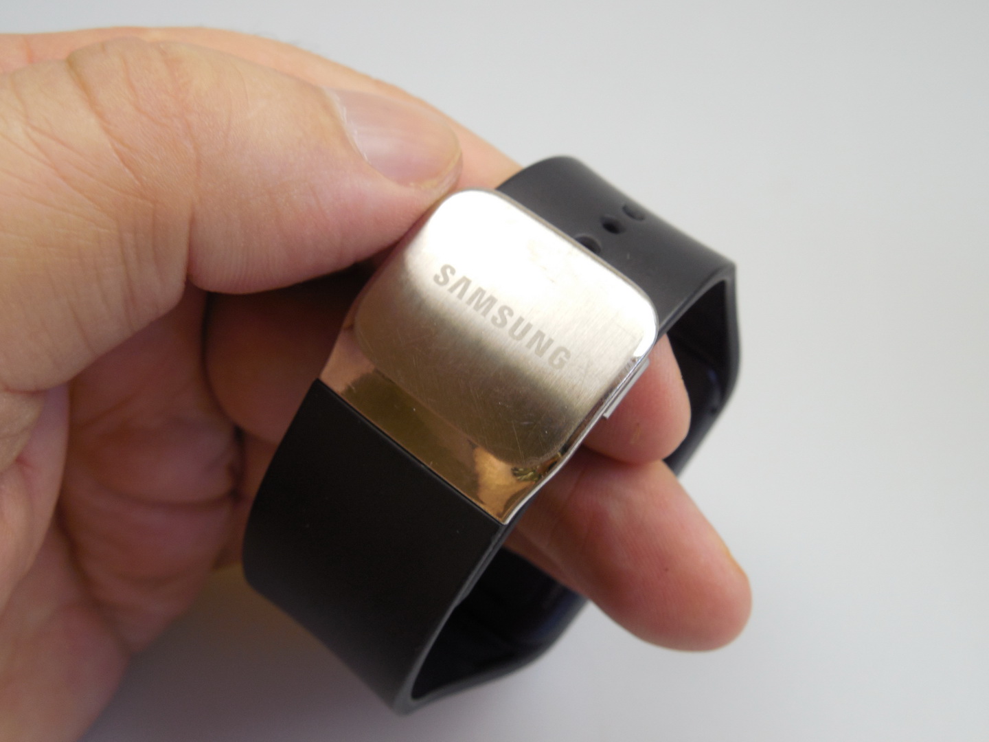 The clasp is user friendly, especially if you handled a Samsung watch before. This is a big and massive smartwatch, that’s also pretty light and it comes with a rubberized plastic band. Upfront there’s the screen with chromed edges, as well as a physical Home button. In the same area there are sensors, like the one for light and one for UV.